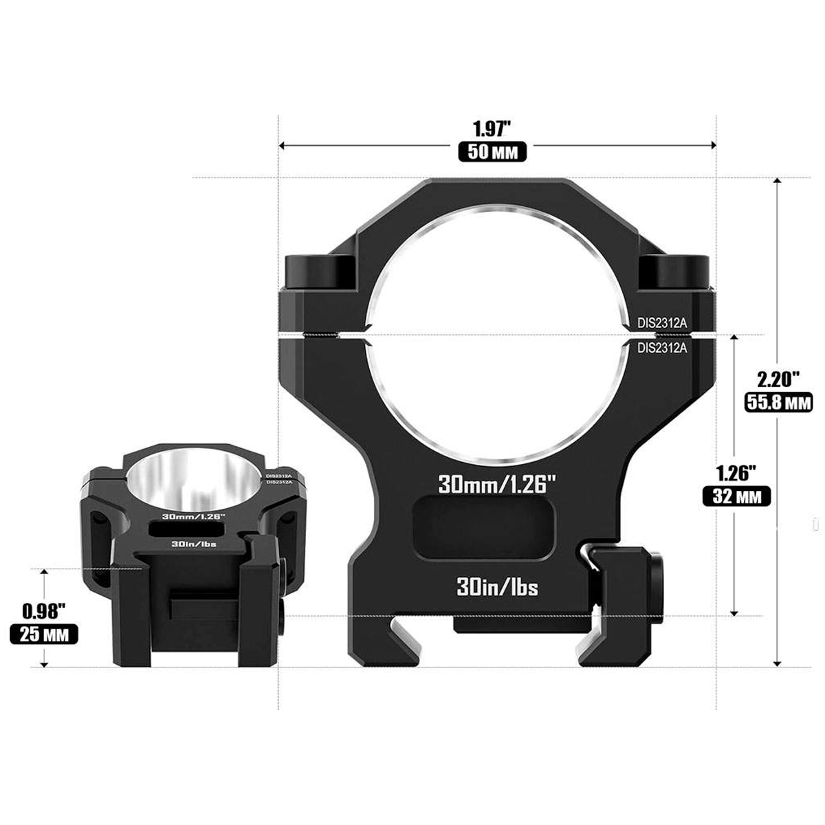 Кільця DISCOVERY OPTICS Scope Mount Rings 7075AL 30 мм (середні) Picatinny