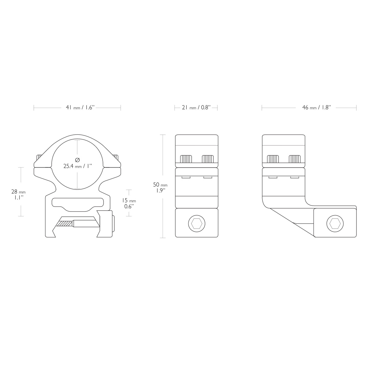 - Match 25.4 мм (високі) винос 25 мм, Weaver