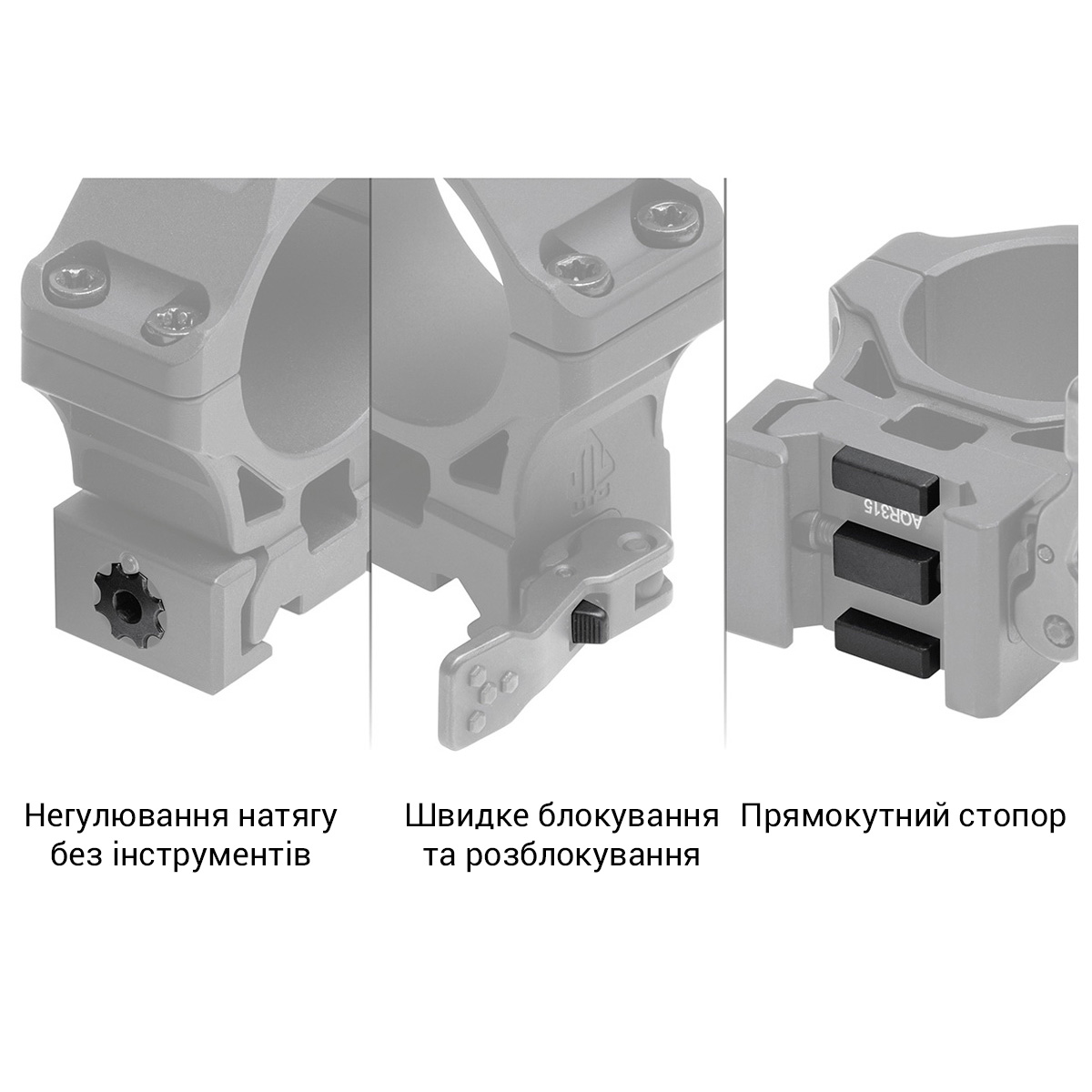 Ïðèö³ë êð³ïèòüñÿ íà ïëàíêó Weaver/Picatinny, ÿêà ãàðàíòóº ì³öíó ô³êñàö³þ ïðèëàäó. Çàâäÿêè ðåòåëüíî ïðîäóìàí³é êîíñòðóêö³¿ ê³ëüöÿ çàáåçïå÷óþòü íàä³éíå óòðèìàííÿ ïðèö³ëó íàâ³òü ï³ä âïëèâîì ñèëüíî¿ â³ääà÷³, çáåð³ãàþ÷è òî÷í³ñòü ïîñòð³ë³â.