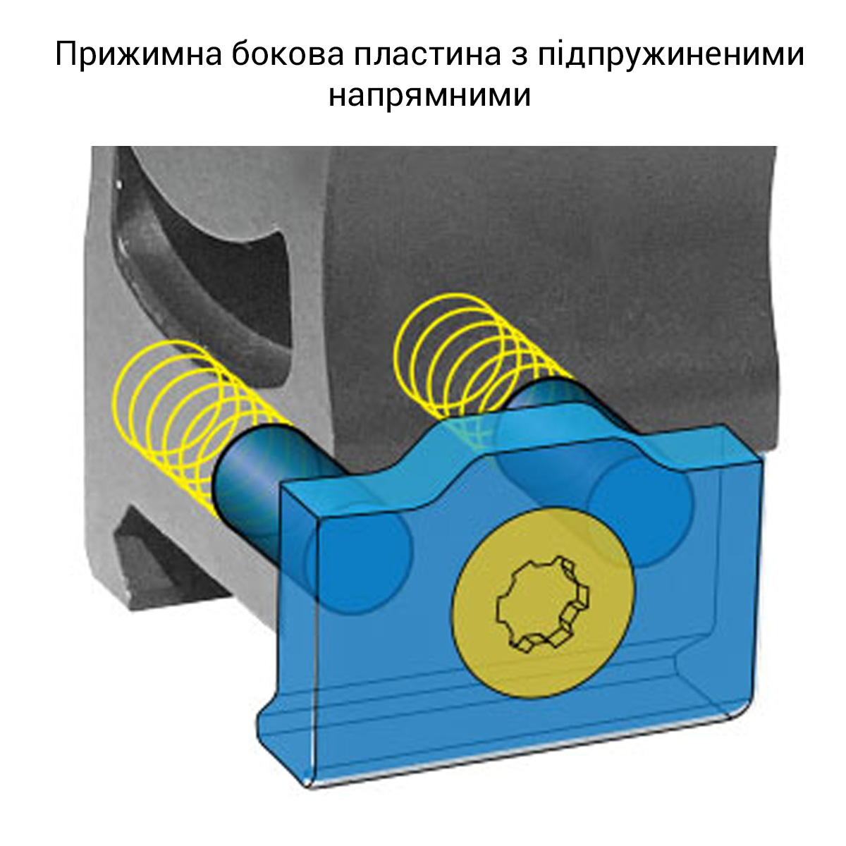 • анодоване покриття • матове покриття • підпружинені напрямні • полегшувальні вирізи • стопор віддачі |