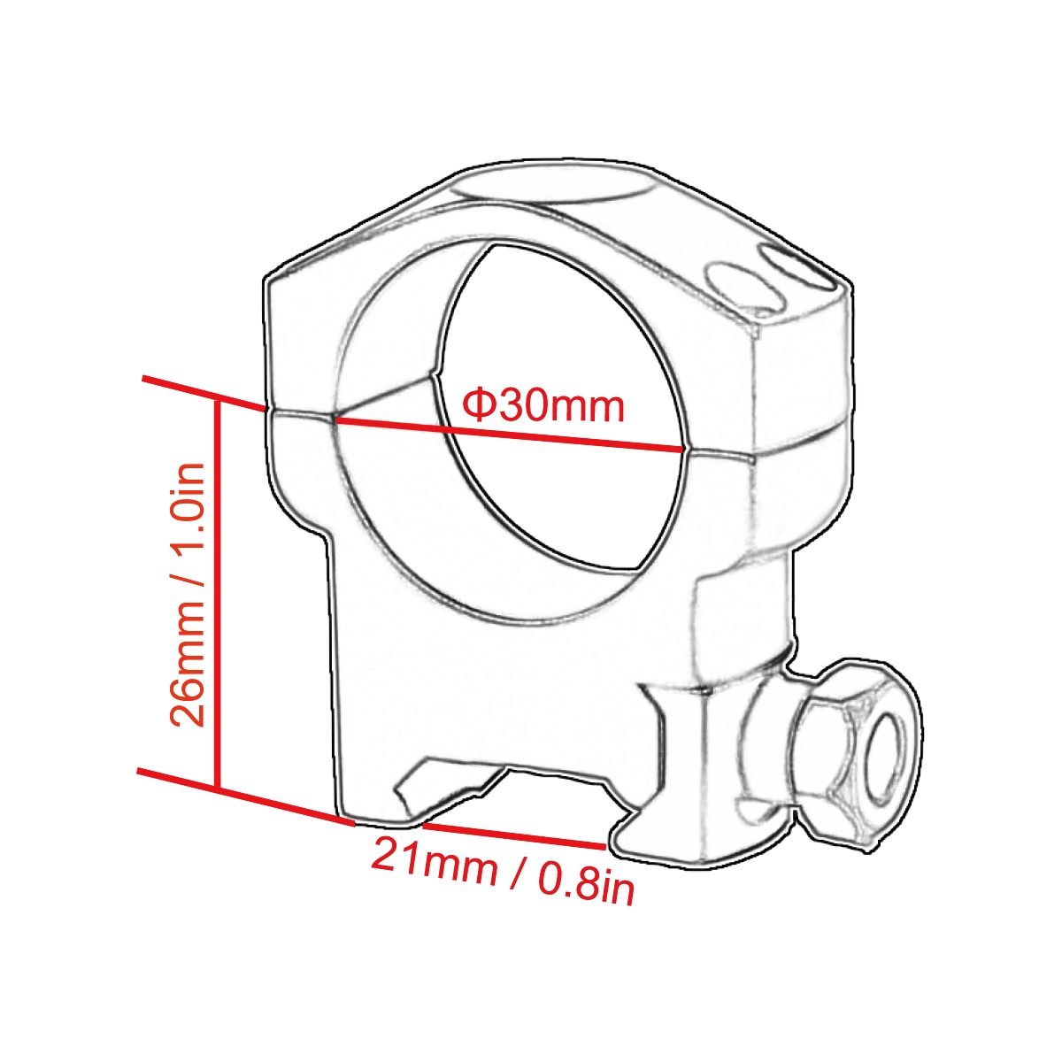 Vector Optics Mark 30 ìì SCTM-22 (medium) — ñåðåäí³ ê³ëüöÿ äëÿ îïòè÷íèõ ïðèö³ë³â, âèãîòîâëåí³ ç àâ³àö³éíîãî àëþì³í³ºâîãî ñïëàâó 6061-T6. Âèñîòà â³ä îñíîâè äî öåíòðàëüíî¿ îñ³ ñòàíîâèòü 25.4 ìì, ùî ðîáèòü ¿õ îïòèìàëüíèìè äëÿ âñòàíîâëåííÿ ñòàíäàðòíèõ îïòè÷íèõ ïðèö³ë³â. ʳëüöÿ ìîíòóþòüñÿ íà ïëàíêó Weaver/Picatinny òà çàáåçïå÷óþòü íàä³éíó ô³êñàö³þ îïòèêè ç ä³àìåòðîì òóáóñà 30 ìì.