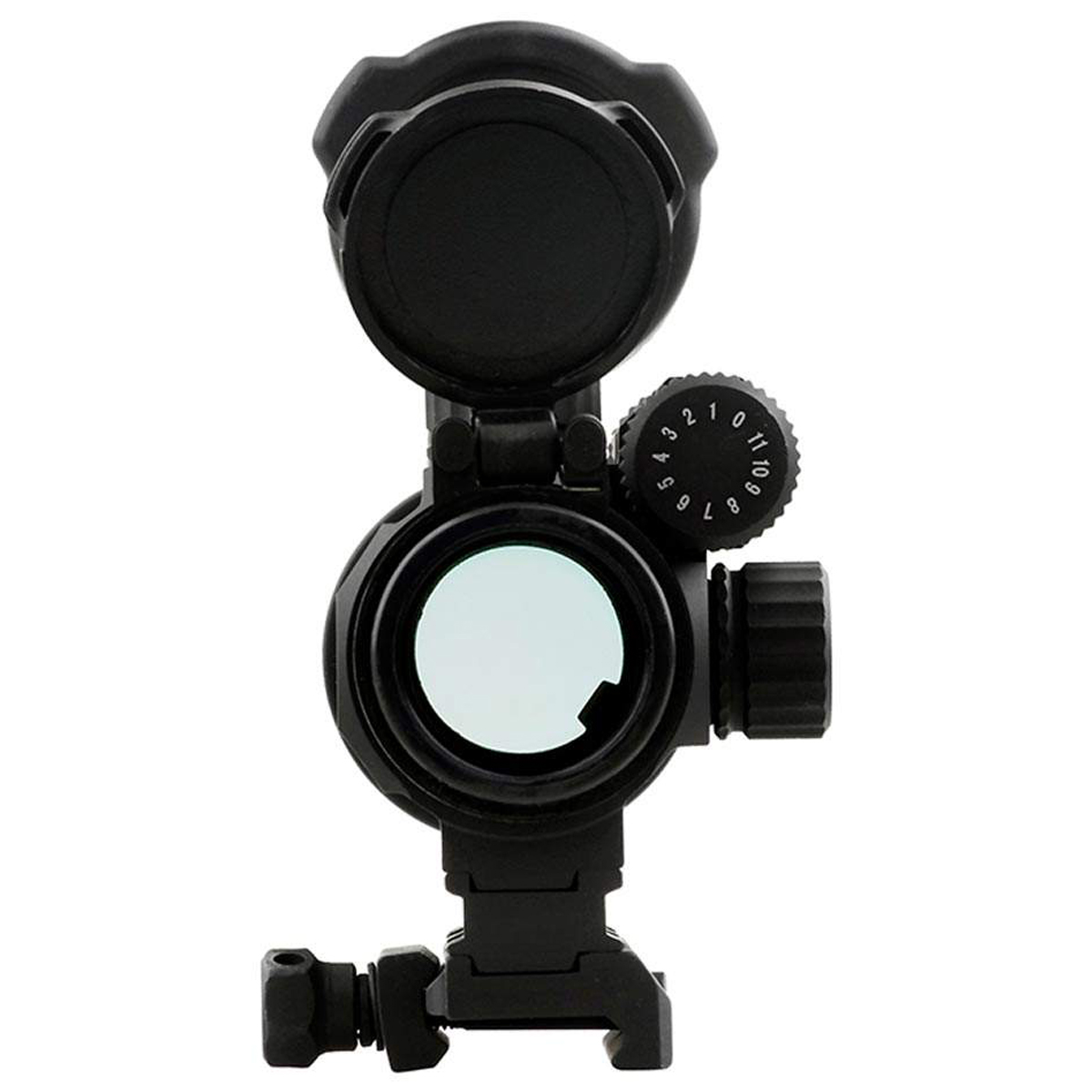 Точне налаштування точки прицілювання здійснюється як по вертикалі, так і по горизонталі в діапазоні 40 MOA. Один клік регулювання відповідає 1 MOA, що дозволяє досягати високої точності при стрільбі. Для додаткового захисту лінз у комплекті передбачені зручні відкидні кришки типу Flip-Up, які захищають оптику від пилу, бруду та механічних пошкоджень під час транспортування чи зберігання.