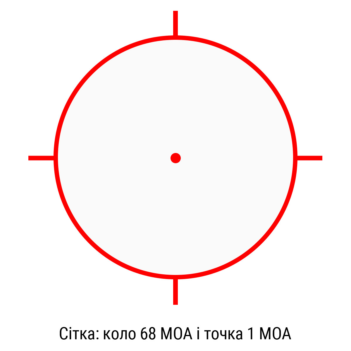 - Сітка прицілу: точка 1 MOA та коло 68 MOA