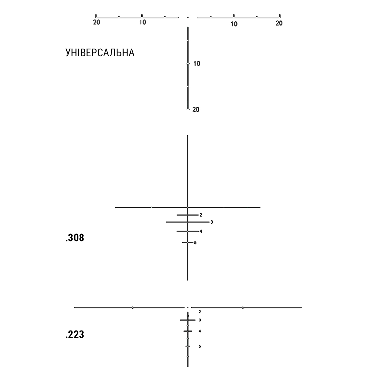 - Зміна прицільних сіток Multiple Reticle System (M.R.S.)