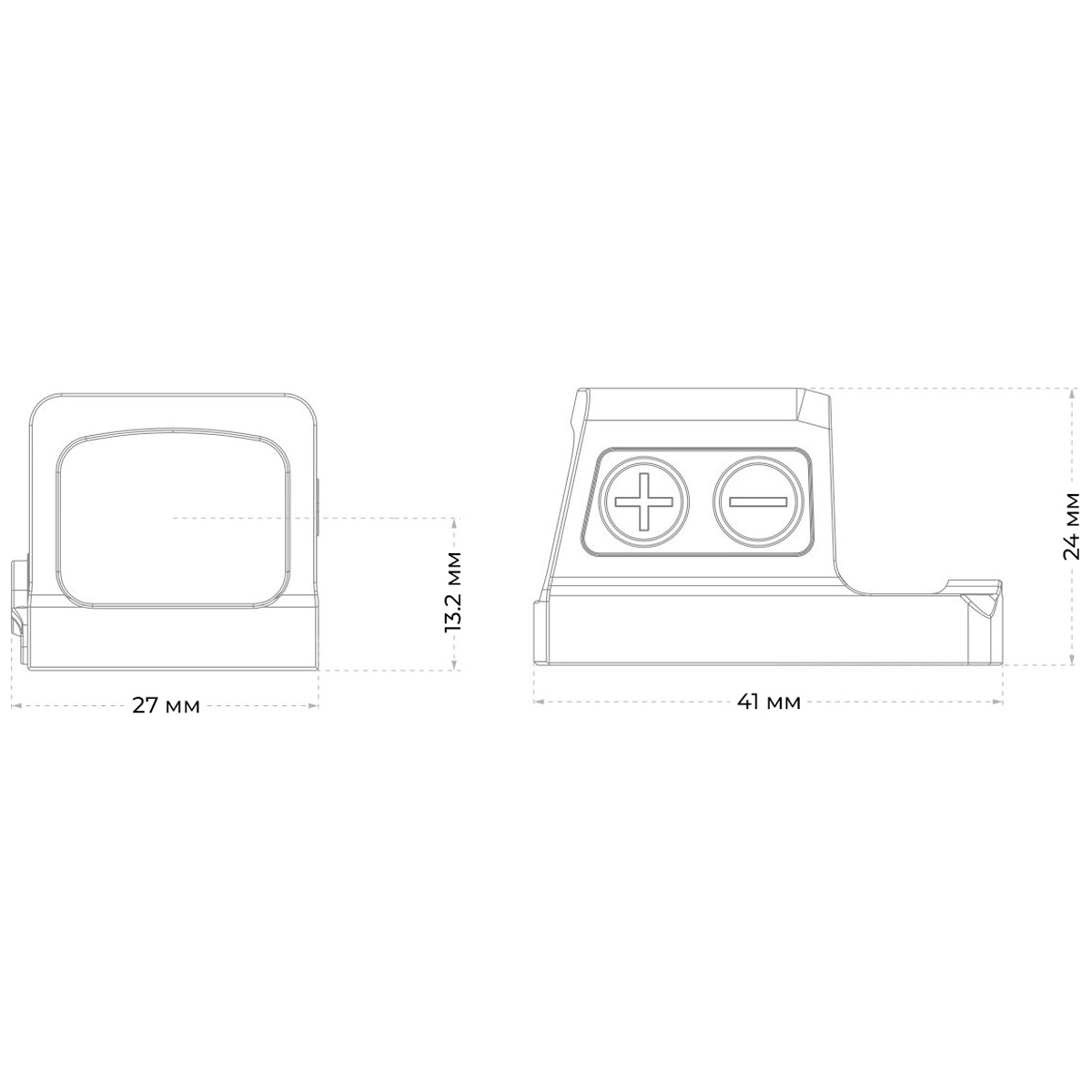 Живлення системи забезпечує одна батарея типу CR1620, ресурсу якої вистачає на 50 000 годин автономної роботи. Для встановлення на зброю приціл використовує платформу K-footprint. Додатково в комплект постачання входить адаптерна пластина під стандарт RMSc, що робить модель сумісною з широким спектром сучасних пістолетних затворів. При екстремально малій вазі всього 35 грамів та довжині 41 мм, цей коліматор залишається практично непомітним при щоденному носінні, не змінюючи ергономіку та баланс вашої зброї.