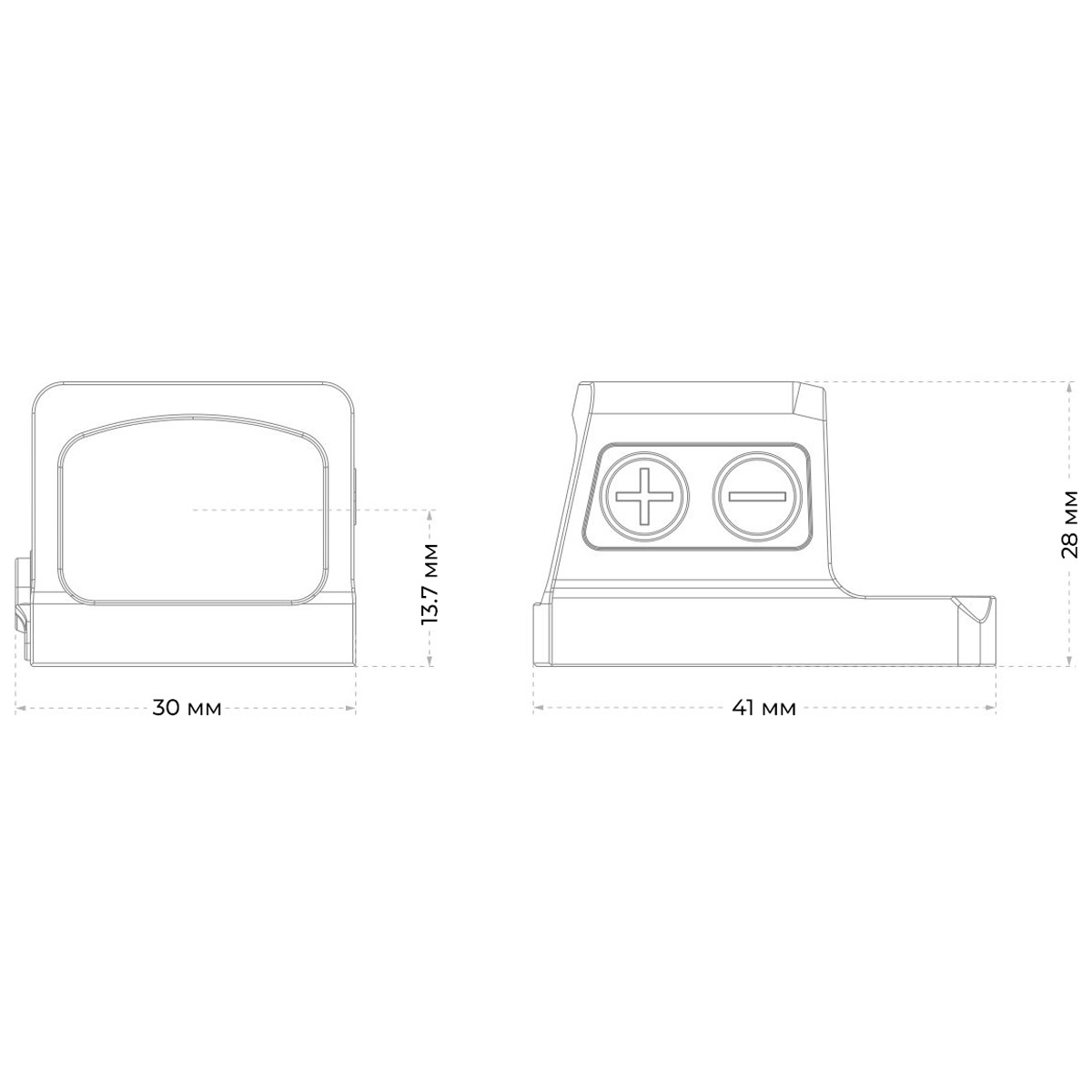 Живлення здійснюється від батареї CR1620, а енергоефективна електроніка гарантує до 50 000 годин роботи. Приціл використовує популярну платформу K-footprint, що робить його сумісним із широким спектром сучасних пістолетів. У комплекті передбачена адаптерна пластина під стандарт RMR для розширення варіантів встановлення. Вага пристрою становить лише 40 г при довжині 41 мм, тому він практично не впливає на баланс зброї.
