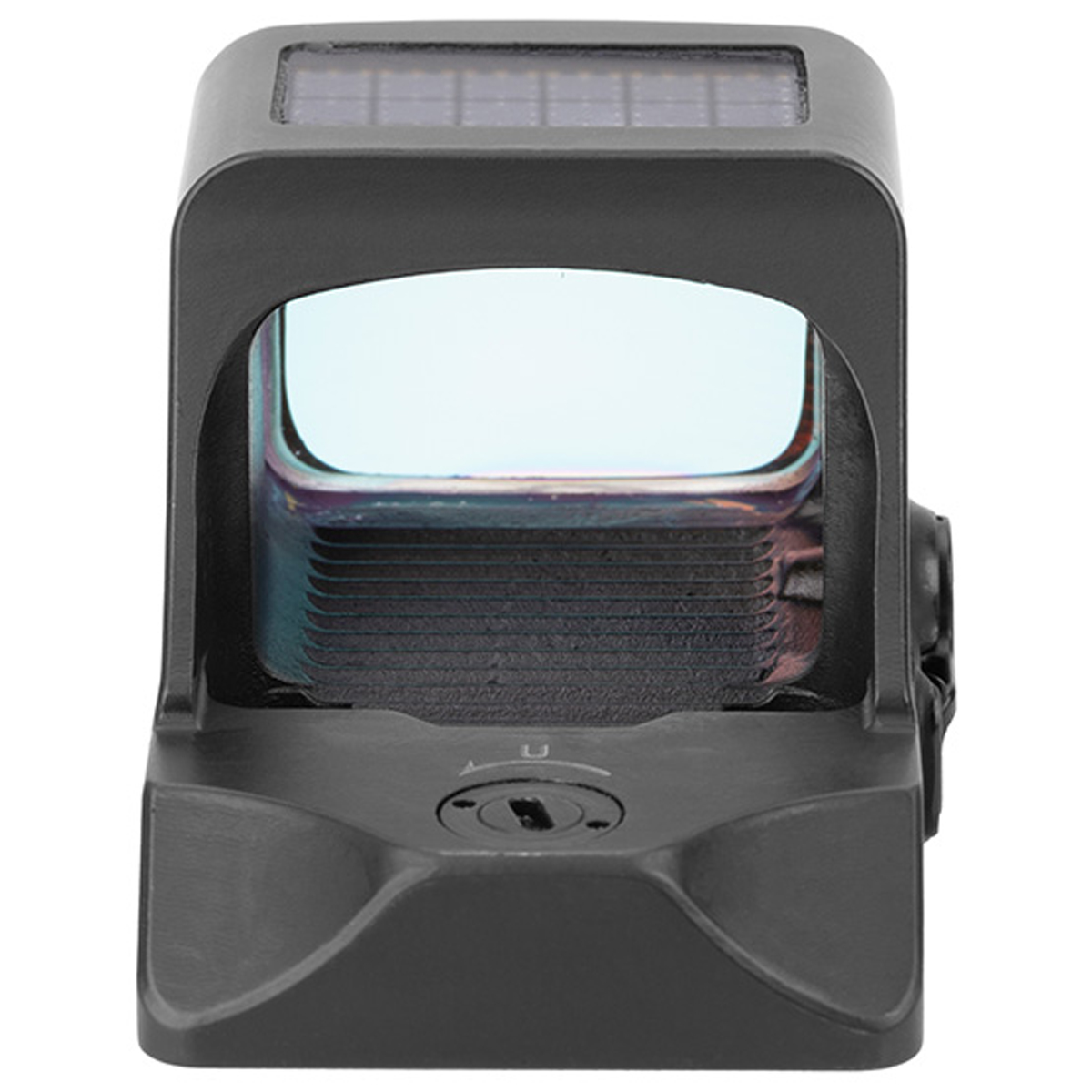 Корпус моделі виготовлено з титанового сплаву Grade 5, який значно перевершує алюміній за міцністю та стійкістю до корозії. Приціл має клас захисту IP67 (повна пилонепроникність та захист від води) та витримує ударні навантаження до 5000G, дозволяючи використовувати його на потужних калібрах. Живлення здійснюється від батарейки CR1632, ресурс якої сягає 50 000 годин. Додаткову надійність гарантує технологія Solar Failsafe™: вбудована сонячна панель не лише живить приціл при достатньому освітленні, але й працює як резервне джерело енергії, якщо батарейка розрядиться. При вазі всього 57 грамів, приціл встановлюється на популярну платформу RMR.