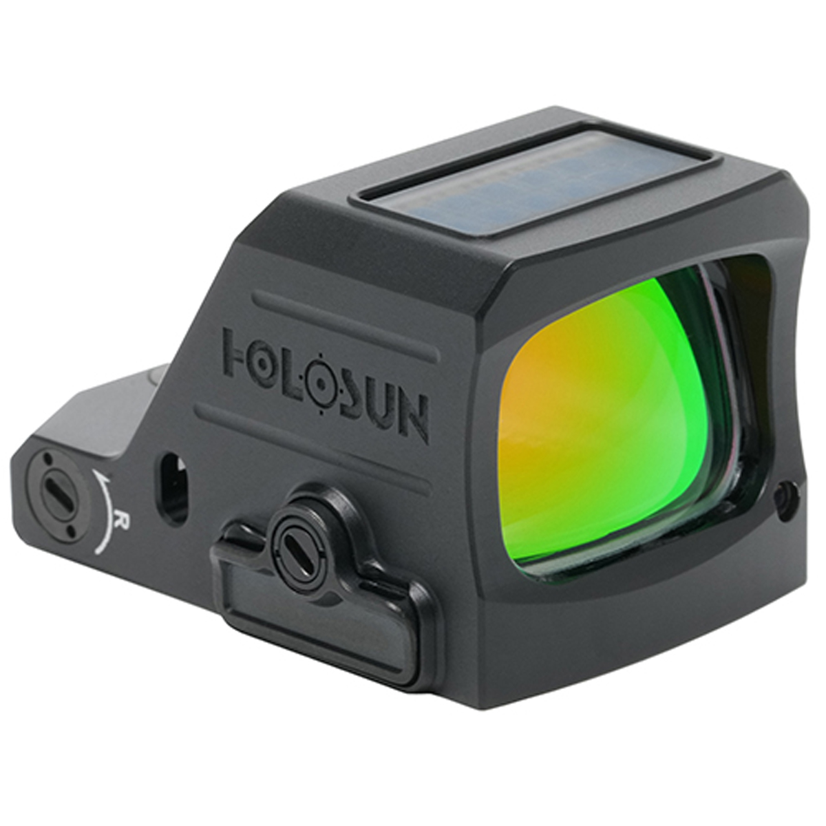 Ця модель оснащена фірмовою системою Holosun Multi-Reticle System (MRS) з золотим кольором підсвітки, який є більш комфортним для людського ока в певних умовах освітлення. Користувач може обирати між трьома варіантами прицільної мітки: чітка точка 2 MOA, комбінація точки 2 MOA з колом 32 MOA або окреме коло 32 MOA. Приціл пропонує 12 рівнів яскравості (8 денних та 4 для роботи з ПНБ). Інтелектуальна начинка включає технологію Shake Awake, яка автоматично вимикає підсвітку під час спокою та миттєво активує її при найменшому русі. Завдяки фронтальному датчику освітлення та функції Solar Failsafe, пристрій самостійно регулює яскравість залежно від оточення. Додатковий режим Lockout Mode надійно блокує кнопки керування, запобігаючи випадковим змінам налаштувань під час активних дій.