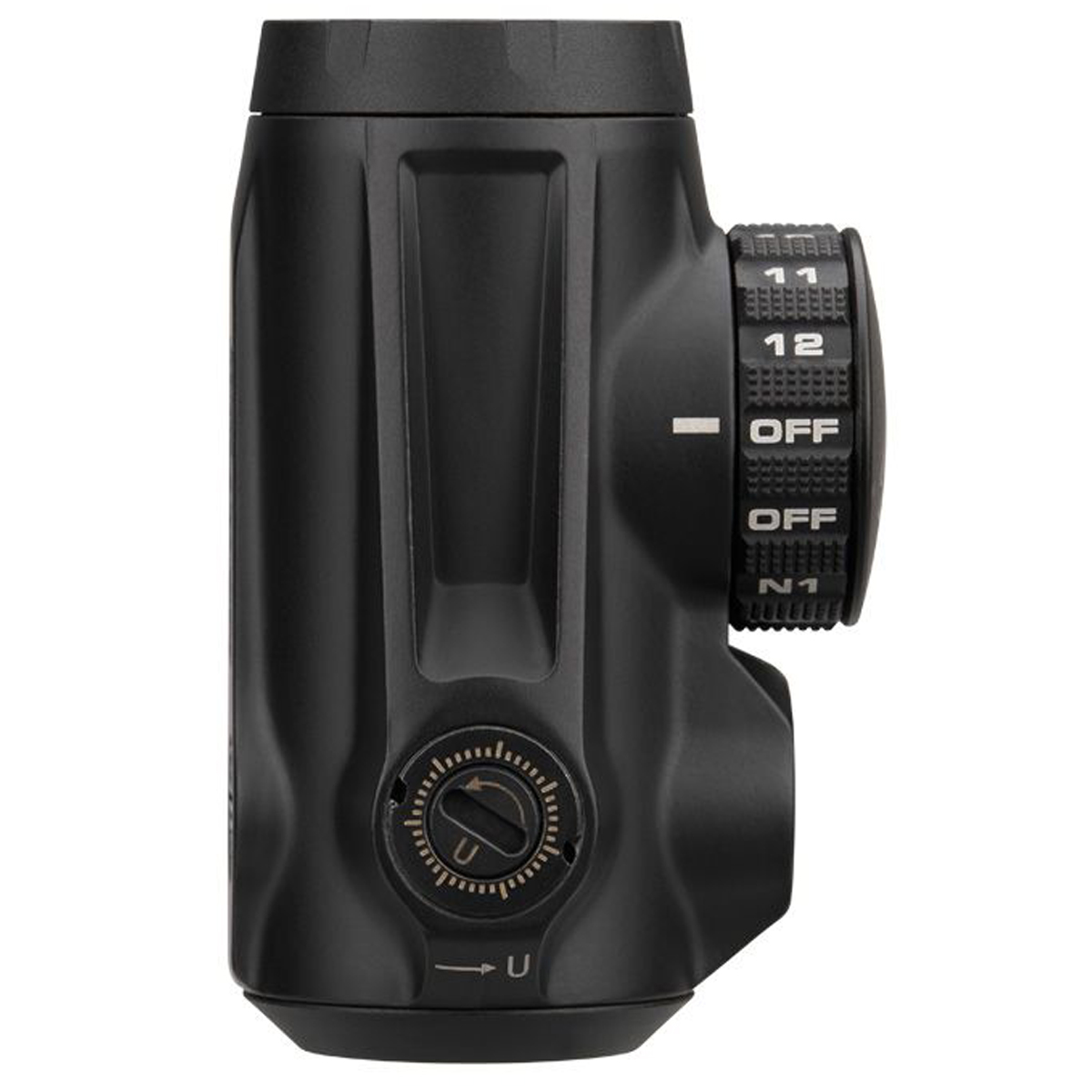 Приціл є повністю вільним від паралакса, гарантуючи, що точка прицілювання залишатиметься на цілі незалежно від положення голови стрільця. Для адаптації до будь-яких умов освітлення передбачено 10 денних рівнів яскравості та 2 спеціальні нічні режими, які пропонують повну сумісність з приладами нічного бачення. Механізми введення поправок мають діапазон налаштувань по горизонталі та вертикалі в 50 MOA з інтуїтивно зрозумілою ціною кліка в 1 MOA. Корпус прицілу герметичний та відповідає стандарту захисту IPX-7, гарантуючи повну водонепроникність (занурення до 1 метра) та захист від запотівання. Живлення від однієї батарейки CR2032 забезпечує час роботи до 35 000 годин. У комплекті йде високе кріплення на планку Weaver/Picatinny.