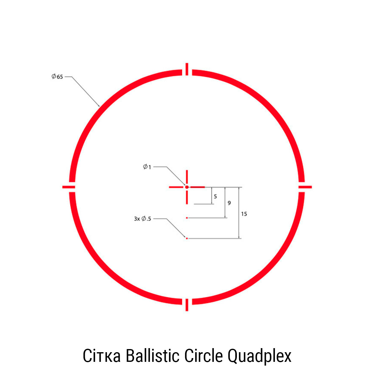 - Розмір центральної точки: 1 MOA