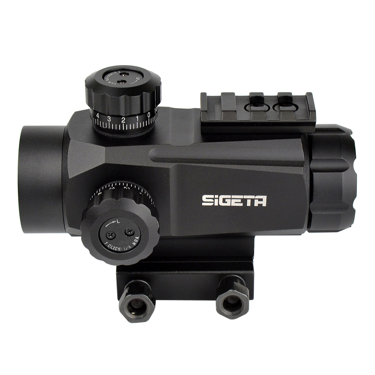 Sigeta EasyDot 1x35 — рефлекторний коліматорний приціл закритого типу з високою універсальністю, який підійде до більшості сучасних типів зброї з рейкою Вівера або Пікатінні. Головною перевагою моделі є 35-мм оптика з багатошаровим просвітленням усіх поверхонь, яка забезпечує першокласну видимість та дозволяє контролювати значну зону огляду. Це ідеальний варіант для стрільби навскидку на невеликих дистанціях, де важлива швидкість наведення та контроль цілі. Приціл оснащено знімною рейкою для кріплення додаткового обладнання: тактичного ліхтаря, лазерного цілевказівника тощо.
