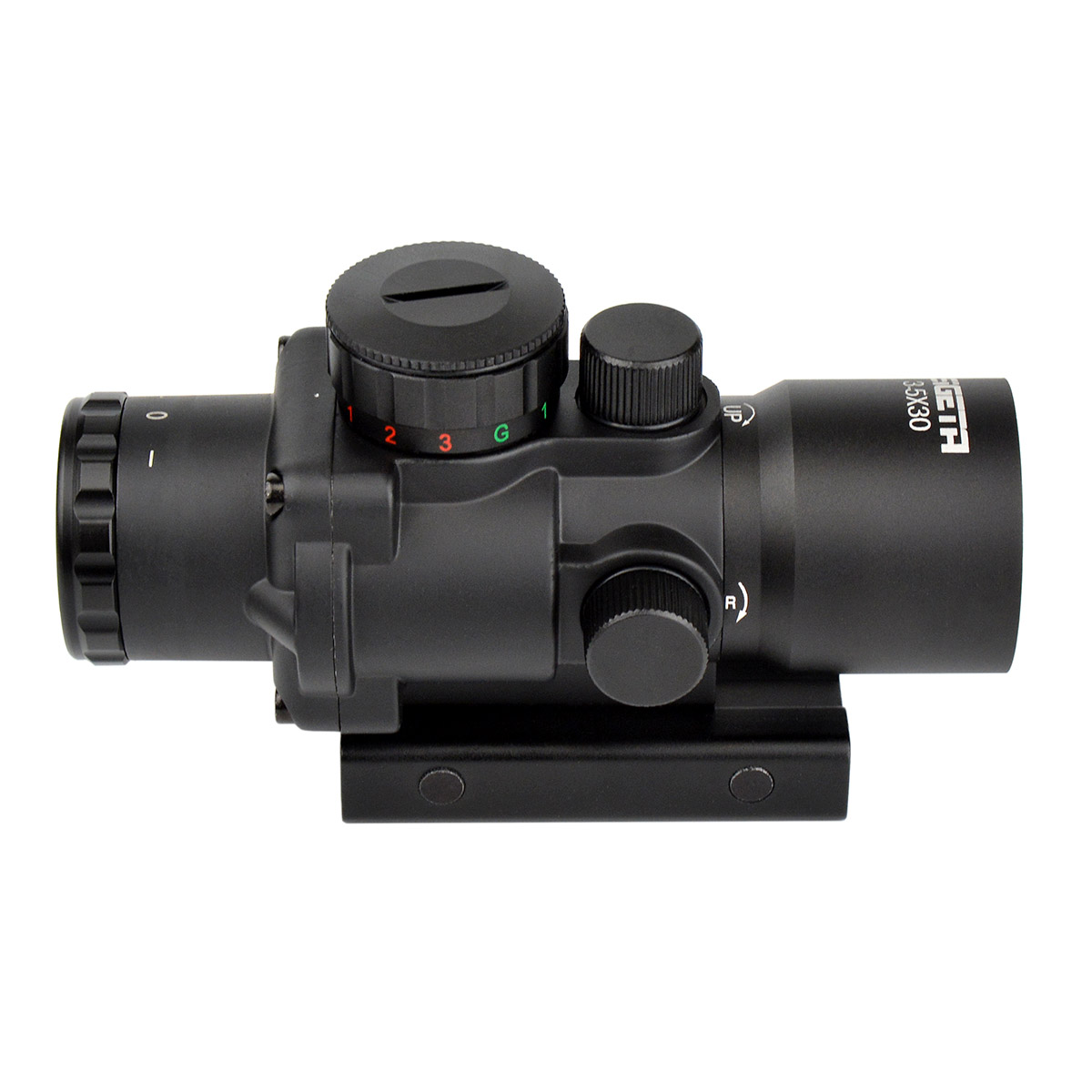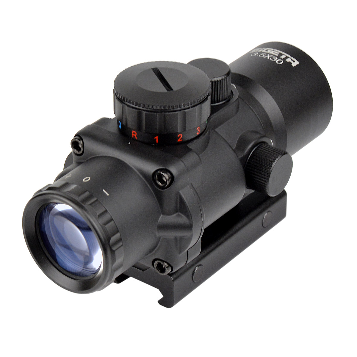 - Prismatic 3.5x30 Mildot Red/Green/Blue