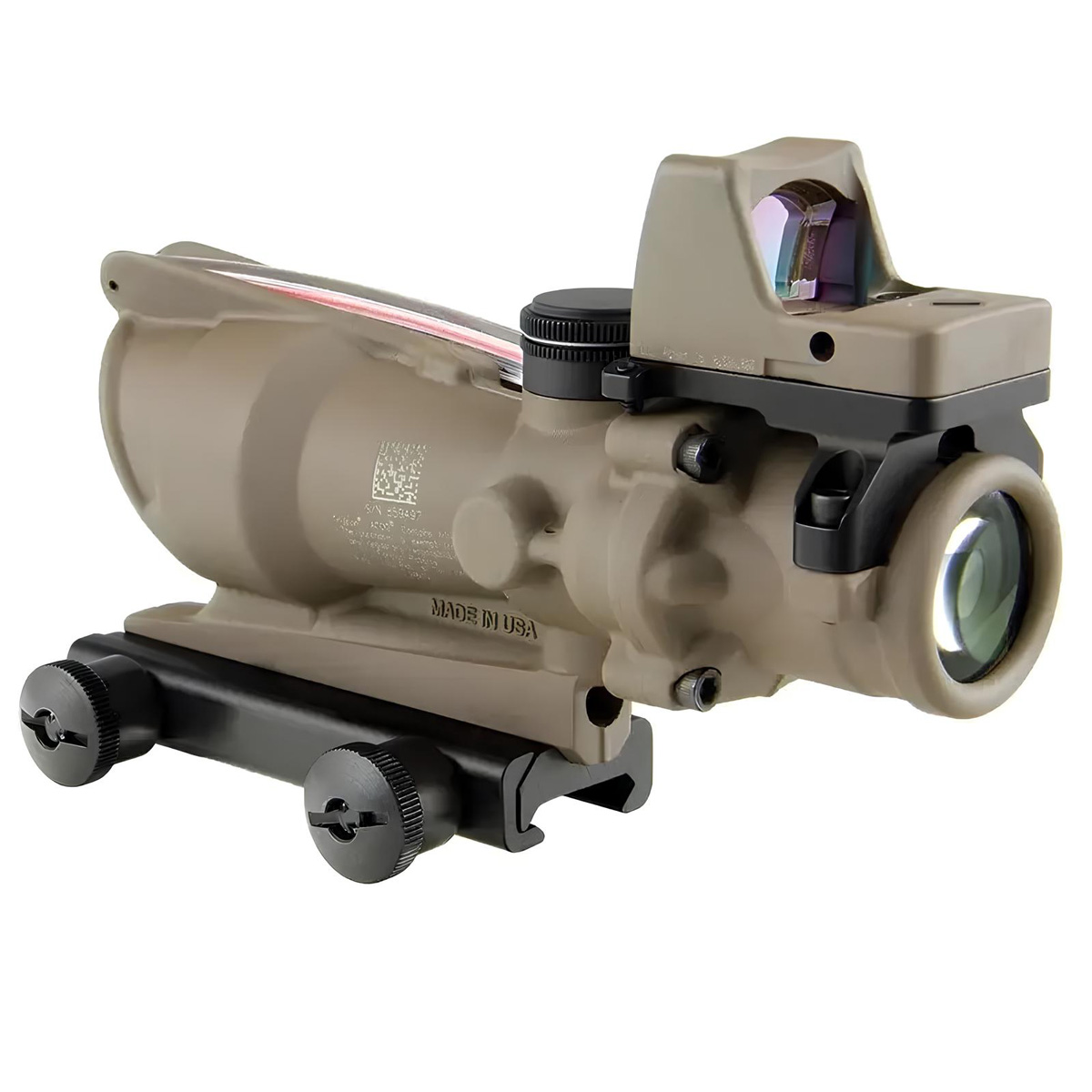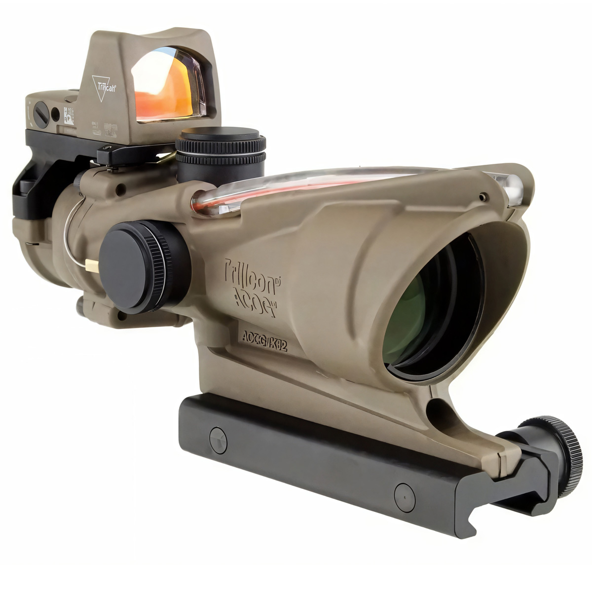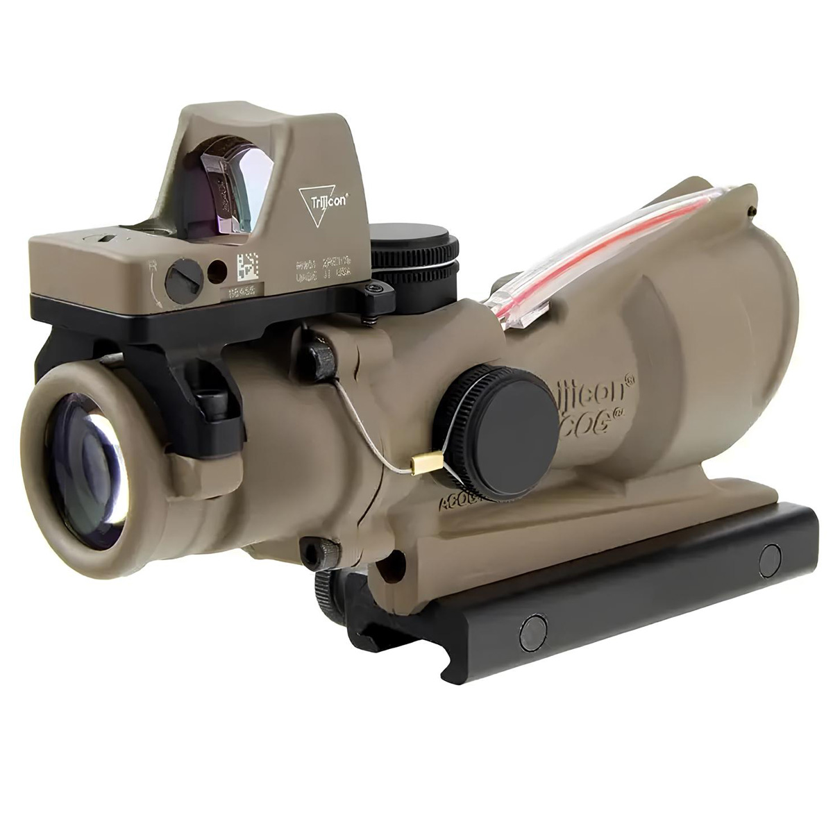 - Призматичний приціл TRIJICON ACOG 4x32 .223 Red Chevron (FDE) + коліматор Trijicon RMR Type 2 (Dot 3.25 MOA, FDE)