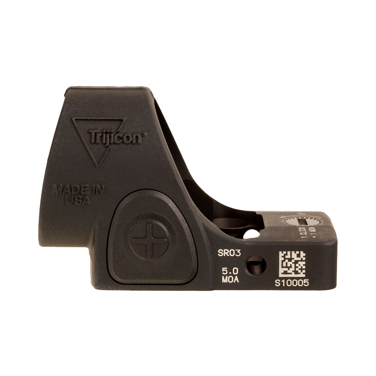 Trijicon SRO 5.0 MOA Red Dot NS (Adjustable LED) – коліматорний приціл відкритого типу із прицільною сіткою у вигляді червоної точки (Dot) розміром 2.5 MOA, що забезпечує роботу як по мішеням, так і по цілям із максимальною точністю і швидкістю влучання.