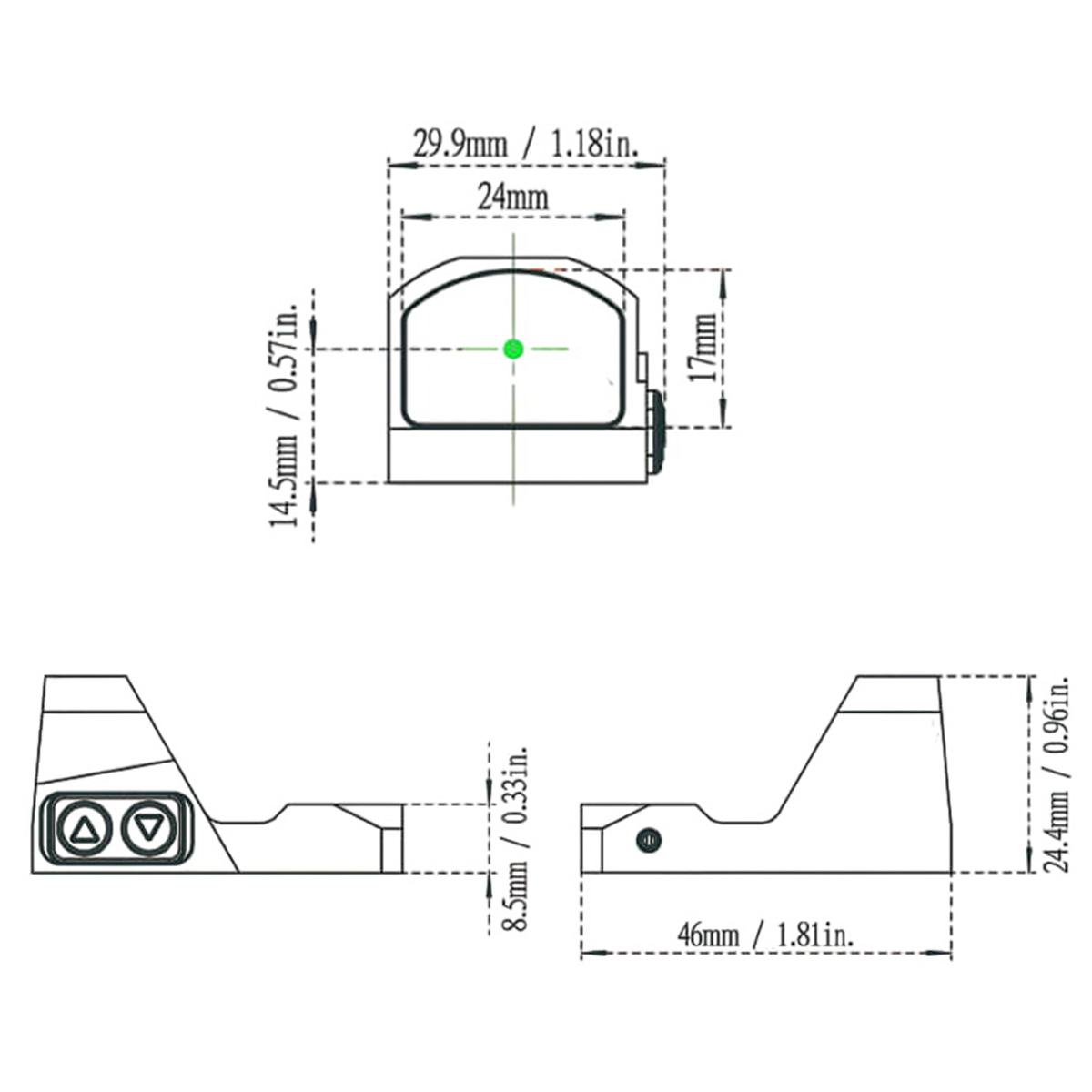 - Коліматорний приціл VECTOR OPTICS Frenzy-S 1x17x24 MIC 3 MOA MGT footprint