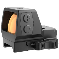 Відкрита конструкція забезпечує природне сприйняття простору та зручну роботу з обома відкритими очима. Фіксоване збільшення 1x не обмежує поле зору, а об’єктив розміром 22x32 мм дозволяє швидко захоплювати ціль. Бокова заміна батареї спрощує обслуговування без необхідності знімати приціл. Модель практично позбавлена паралакса (<2 MOA), що позитивно впливає на точність наведення на різних дистанціях.