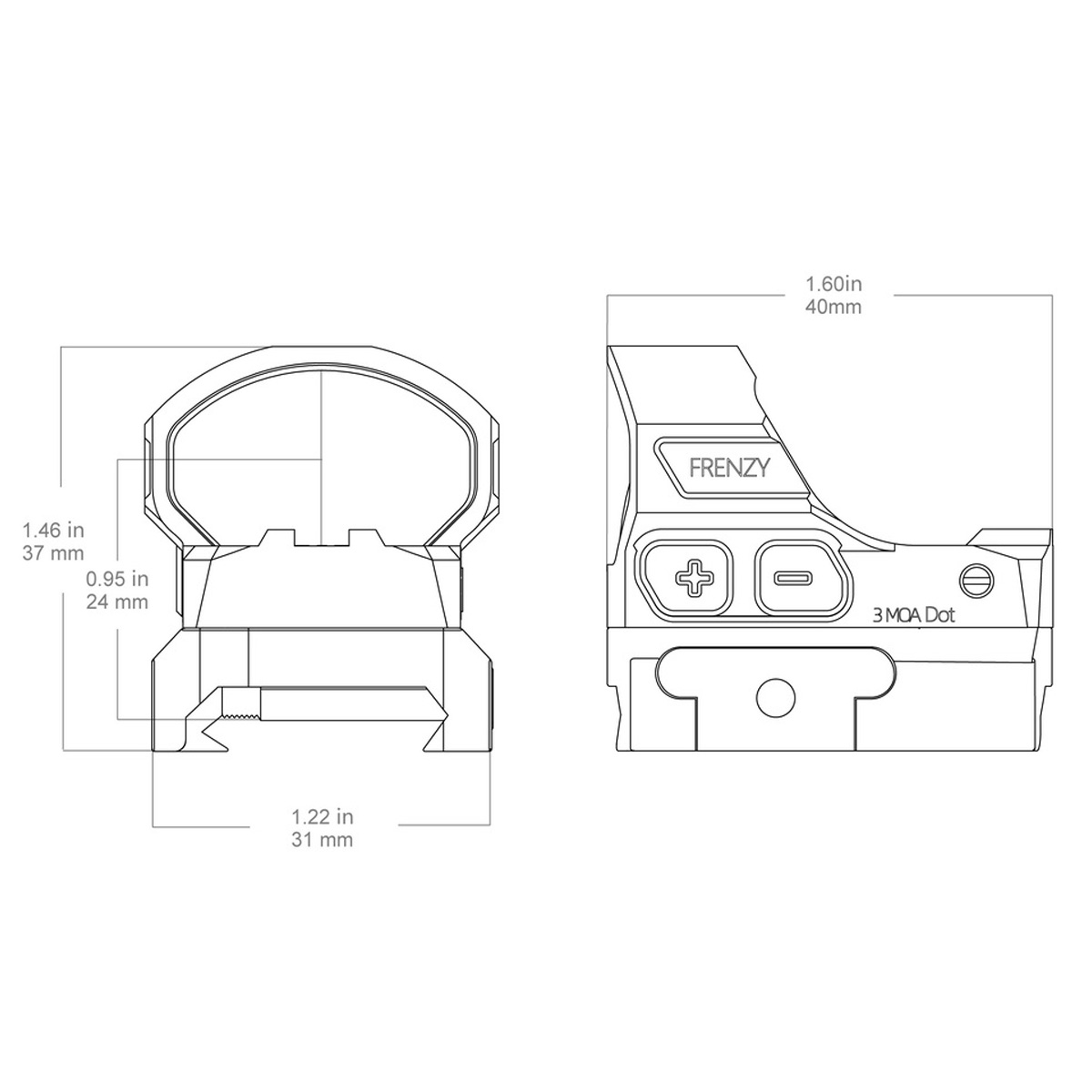 Червона прицільна точка розміром 3 MOA дозволяє легко та швидко наводитися на ціль, навіть на середніх дистанціях. Frenzy-S має 11 рівнів налаштування яскравості, які дають змогу підібрати оптимальне підсвічування під будь-яке освітлення — від яскравого сонця до сутінків. Датчик руху автоматично вмикає та вимикає приціл, дозволяючи зберігати заряд батареї та готовність до стрільби у будь-який момент.