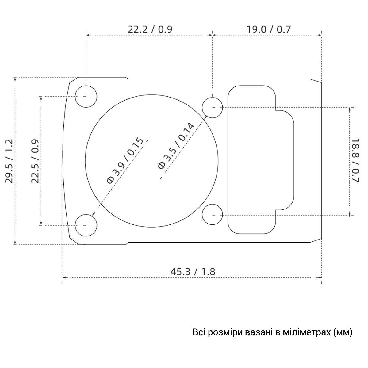 - Розміри прицілу: 52 x 36 x 44 мм (з кріпленням)