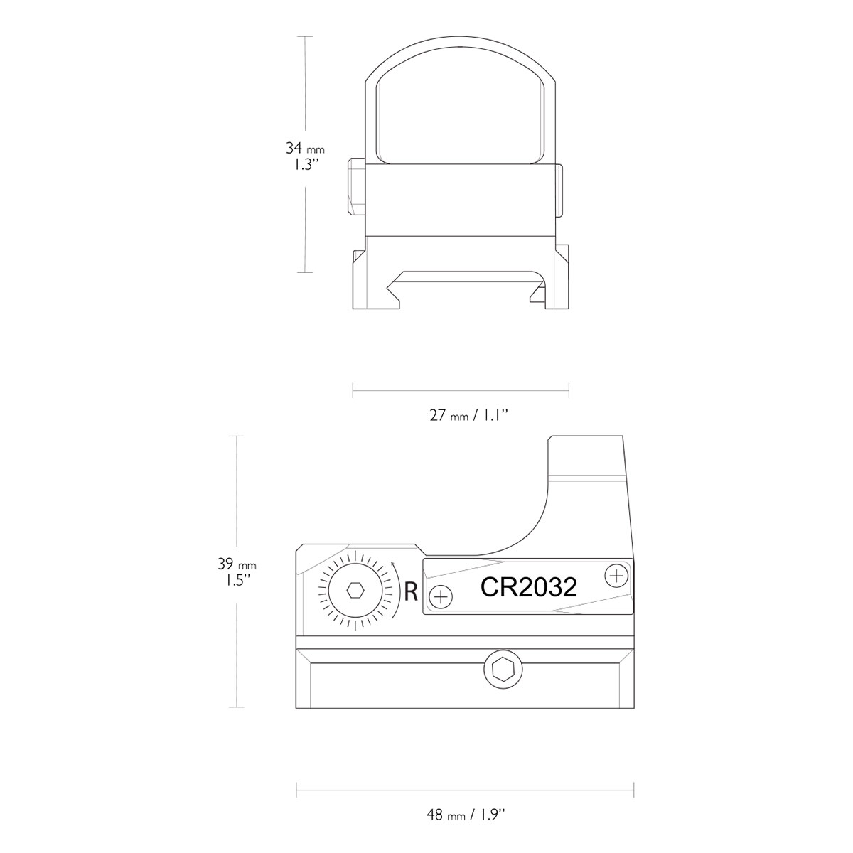 Приціл проєктує прицільну точку червоного кольору 3 MOA. Вибір інтенсивності кольору із 8 рівнів виконується натисканням кнопок на бічній частині. Для економії заряду батарейки передбачено автоматичне вимкнення прицільної марки після 5 хвилин бездіяльності.