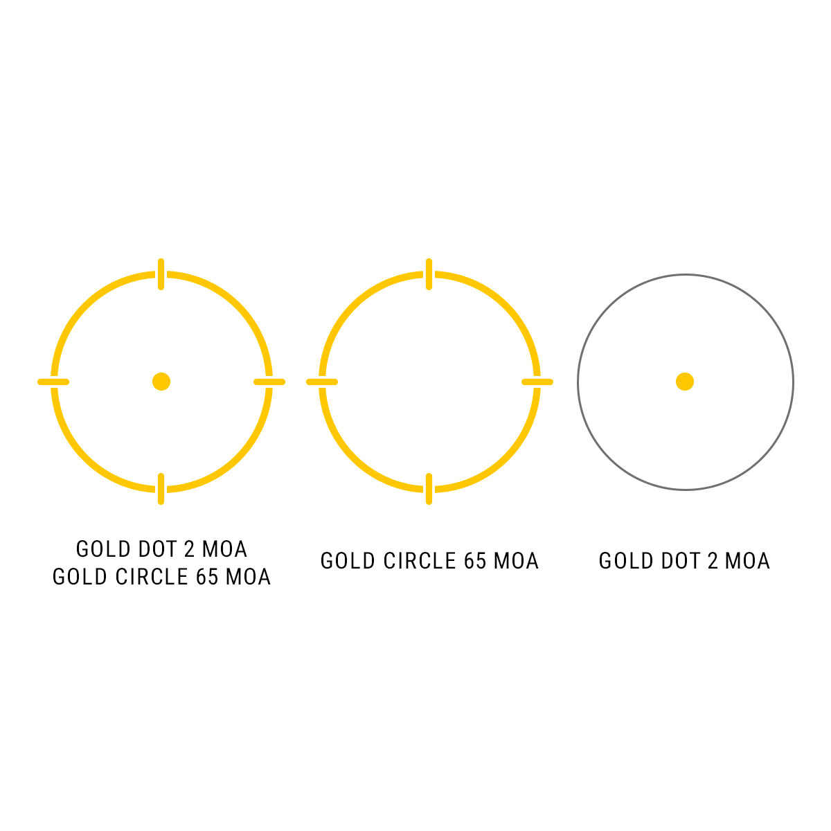 - Прицільна сітка: точка 2 МОА; коло 65 МОА; точка 2 МОА у колі 65 МОА