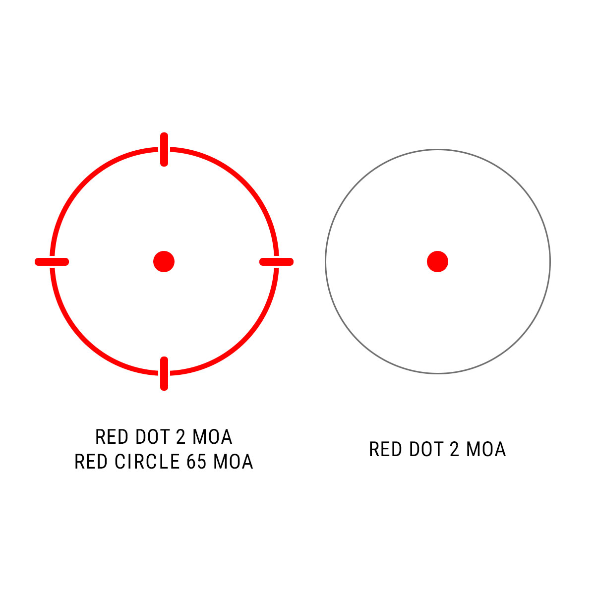 - Прицільна сітка: точка 2 МОА; точка 2 МОА у колі 65 МОА