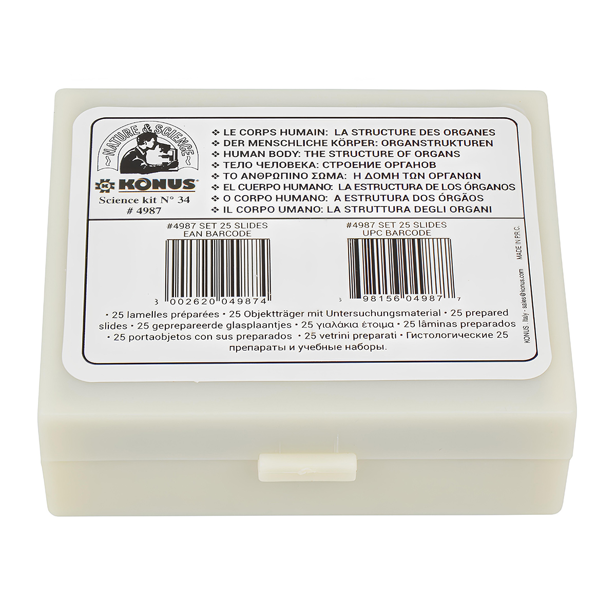 Набір мікропрепаратів Тіло людини: будова органів (25 шт.) від Konus – це 25 професійно підготовлених слайдів для мікроскопів, які розкривають розділ біології, що вивчає анатомію та гістологію.
