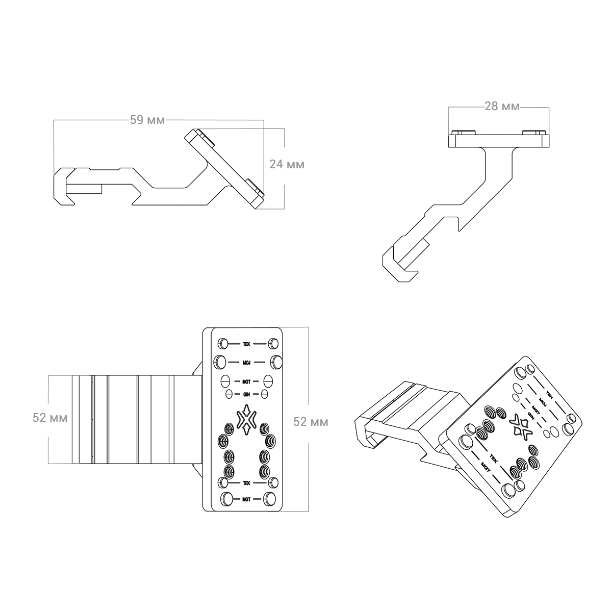 Монтаж здійснюється на стандартну планку Picatinny, забезпечу.xb сумісність з більшістю сучасних карабінів і гвинтівок. Кріплення виготовлене з високоміцного алюмінієвого сплаву 7075-T6, який відзначається відмінним співвідношенням міцності та ваги й широко використовується в авіаційній та збройовій промисловості. Чорне матове анодування знижує відблиски та додатково захищає поверхню від корозії й механічних пошкоджень. Тип фіксації — постійний, це гарантує стабільне утримання прицілу навіть при інтенсивній стрільбі та високій віддачі. Вага кріплення становить лише 36 г, а довжина — 51,5 мм, тому воно практично не впливає на баланс зброї.