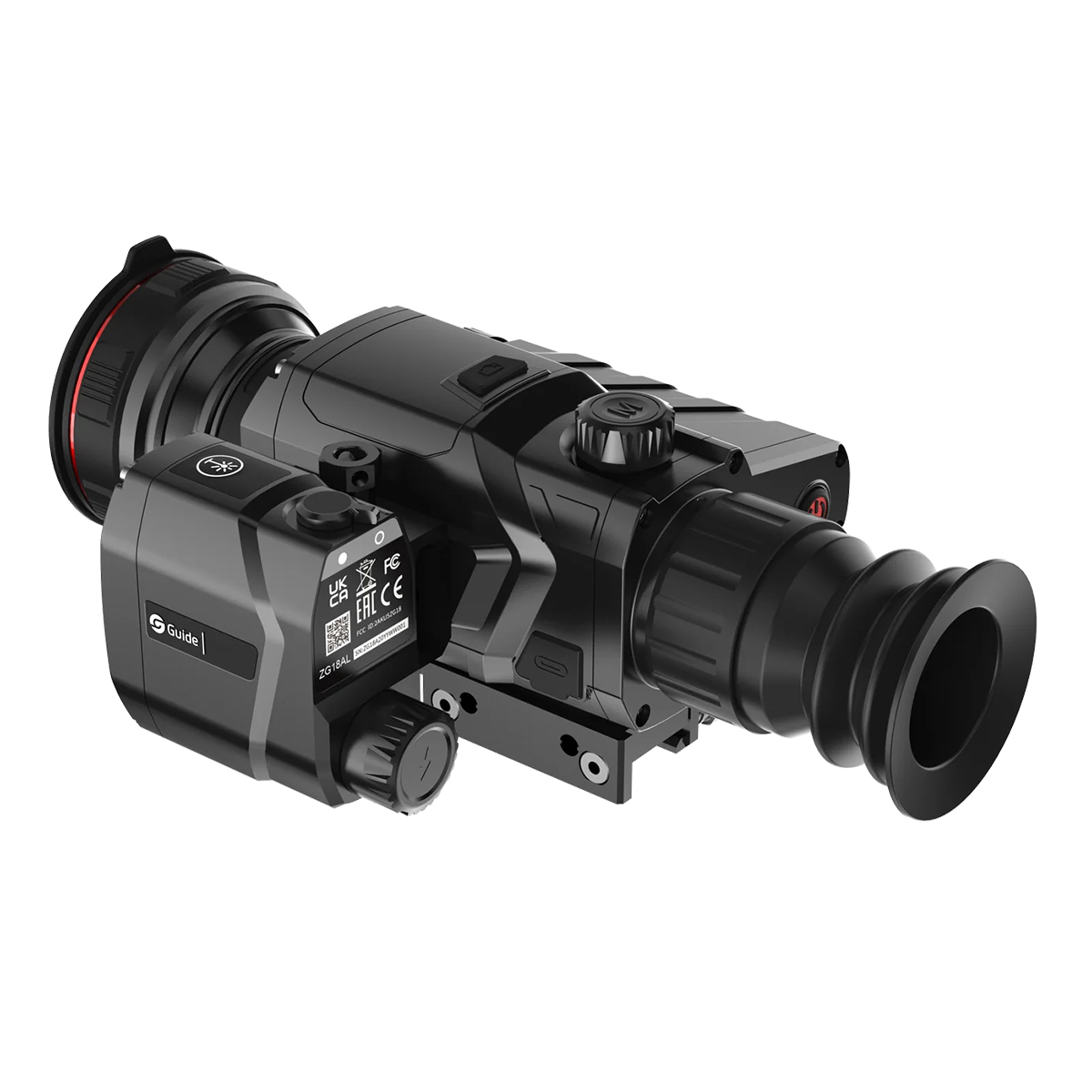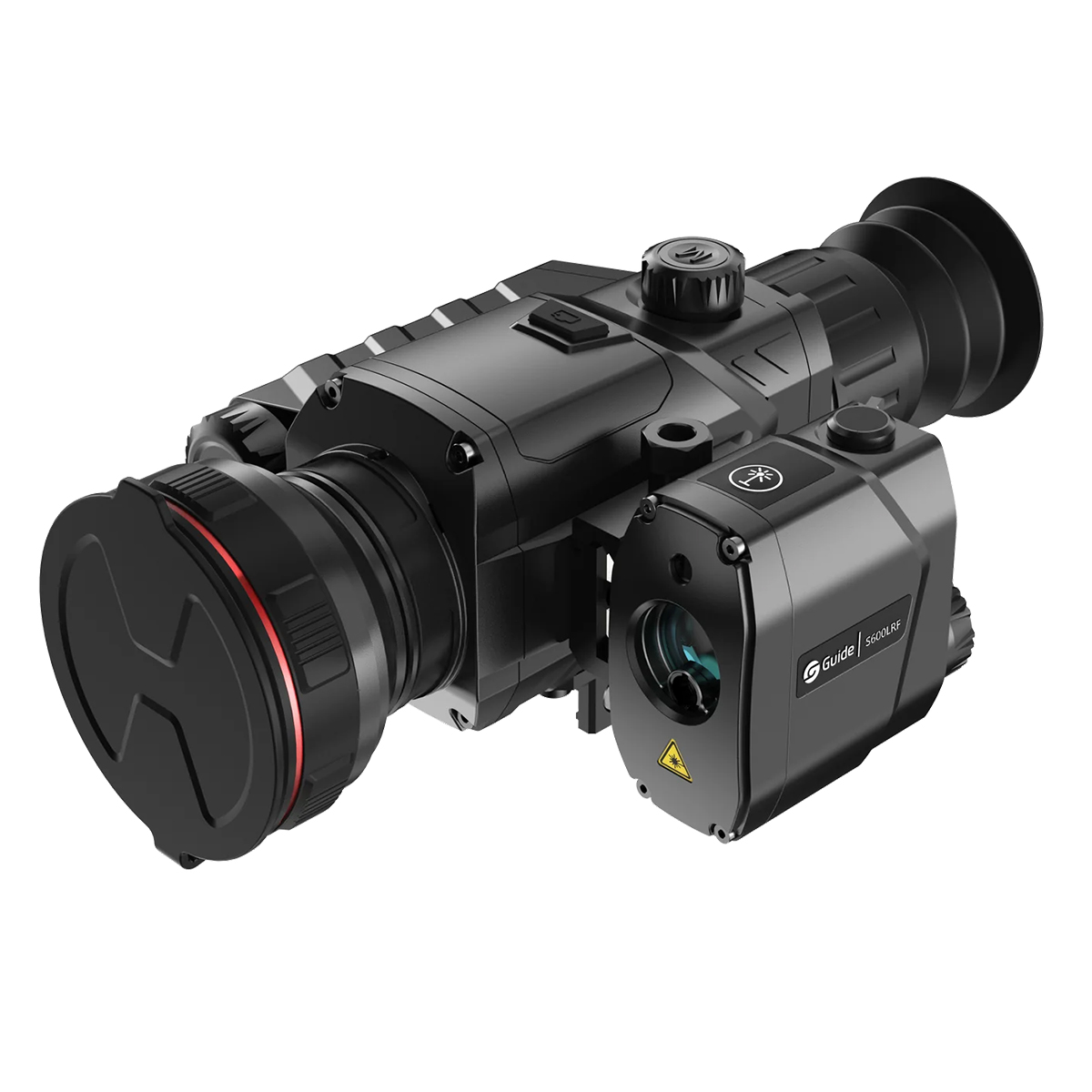 GUIDE S600LRF — це виносний лазерний далекомір з дальністю вимірювань до 600 метрів, призначений для встановлення на тепловізійні приціли GUIDE моделей TR4.. та моделей TR6... Далекомір кріпиться до прицілу за допомогою стандартної планки Picatinny, яка входить до комплекту. Синхронізація з основним пристроєм здійснюється автоматично шляхом Bluetooth. Для цього необхідно заздалегідь, в меню тепловізора, активувати відповідний режим. Показники дальності виводитимуться безпосередньо на екран прицілу.