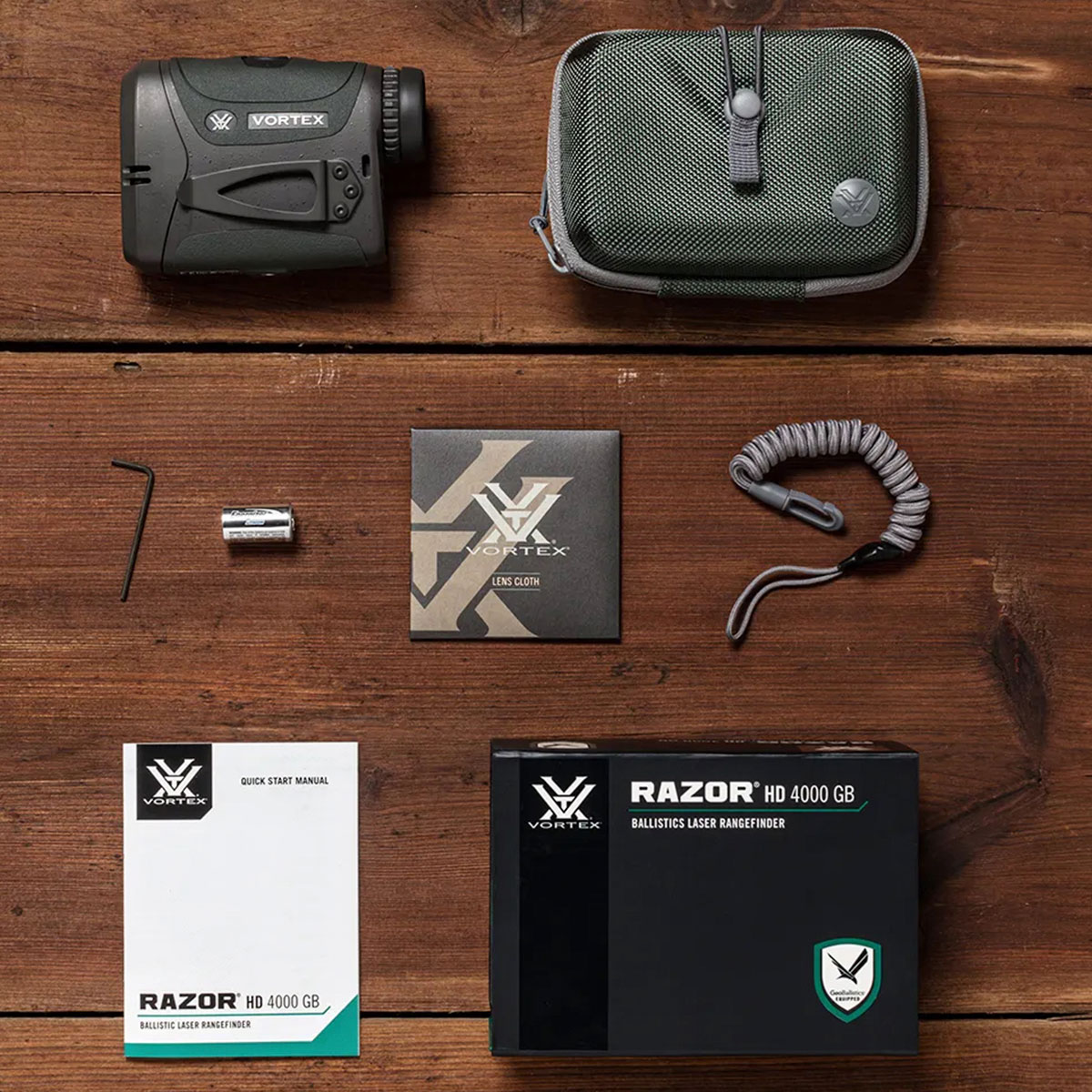 Лазерний далекомір Vortex Razor HD 4000 GB призначений для військових цілей, для мисливців та любителів спортивної стрільби. Далекомір здатний виміряти дистанцію до 3658 метрів (до 4000 ярд), а також кут до 70°.