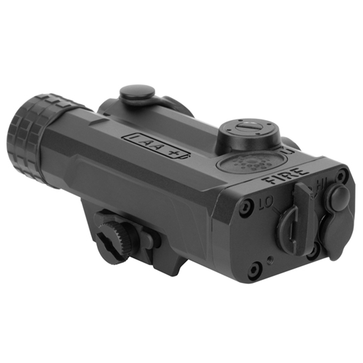 Корпус пристрою виготовлений із високоякісного авіаційного алюмінієвого сплаву 7075-T6, що гарантує підвищену міцність і стійкість до ударних навантажень до 1000 G. Поверхня має анодоване покриття, яке ефективно захищає прилад від подряпин, корозії та зовнішніх впливів. Прилад відповідає найвищому стандарту вологозахисту IPX8, що дозволяє занурювати пристрій на значну глибину без ризику пошкодження. Завдяки інтегрованому кріпленню, пристрій легко і надійно монтується на будь-яку стандартну планку Picatinny. Для живлення використовується одна батарея типу AA, яка забезпечує до 10 годин безперервної роботи. При довжині 86 мм та вазі 130 грамів, модуль залишається надзвичайно компактним і легким.