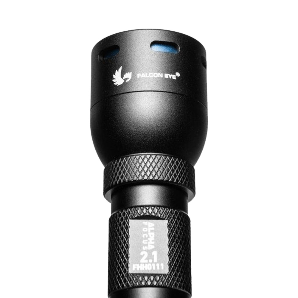 Falcon Eye Alpha 2.1 живиться від батарейки АА — одна з найпоширеніших, компактних і недорогих. В економному режимі ліхтар може працювати до 4 години. Корпус ліхтаря виготовлений з алюмінію, має товсті стінки та анодоване покриття, що забезпечує захист від падіння на бетонну поверхню з висоти 1 м. Гумові ущільнювачі гарантують герметичність за стандартом IPX4 (захист від водяних бризок).