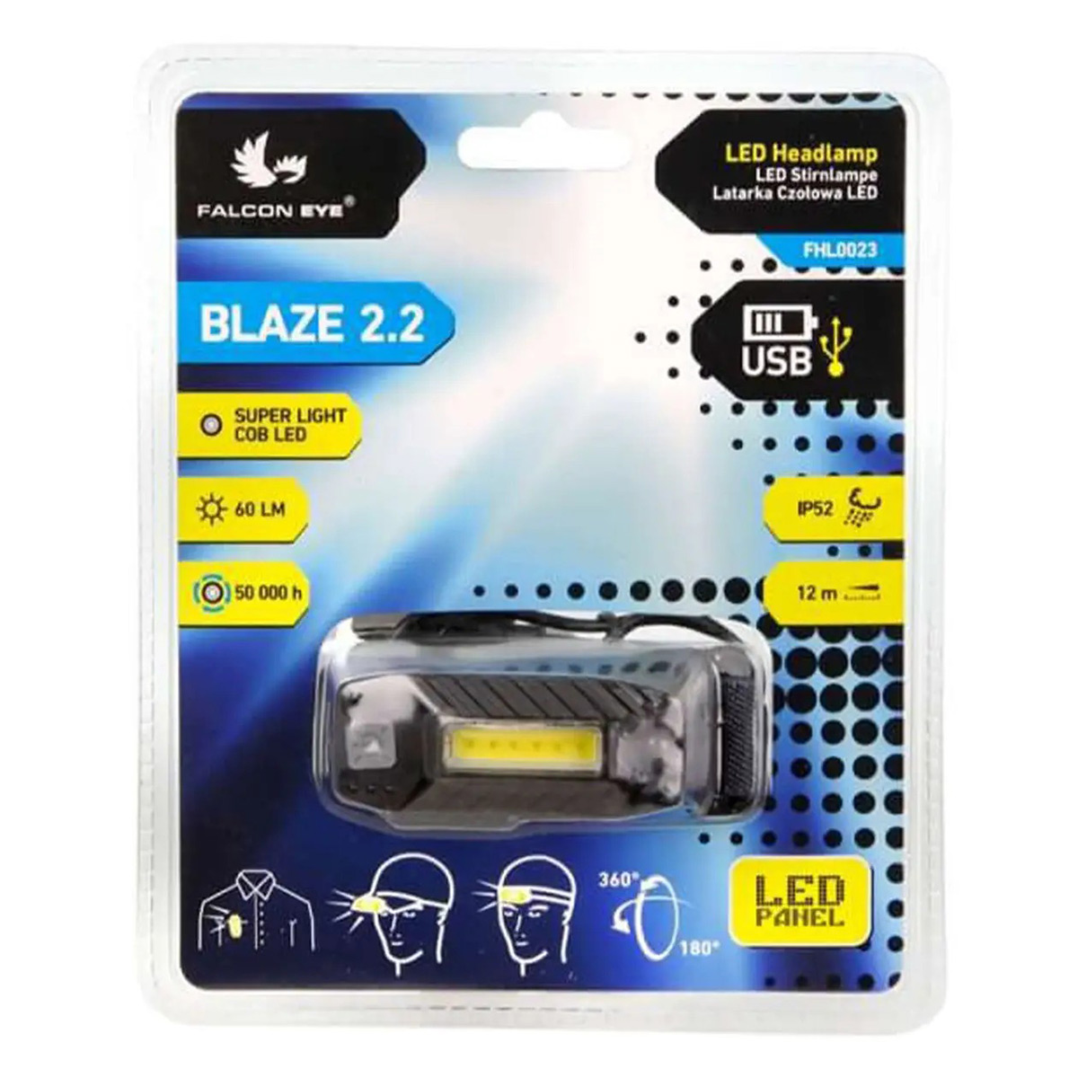Falcon Eye Blaze 2.2 (60 Лм) — це дуже легкий і компактний акумуляторний налобний ліхтар. Вага цього «малюка» складає лише 37 грамів, а отже він практично невідчутний на тілі. Модель вирізняється спеціальним кріпленням, що дозволяє обертати прилад на 360 градусів. Ще однією перевагою є кліпса, яка дає можливість закріпити ліхтар за козирок кепки або інші елементи одягу.