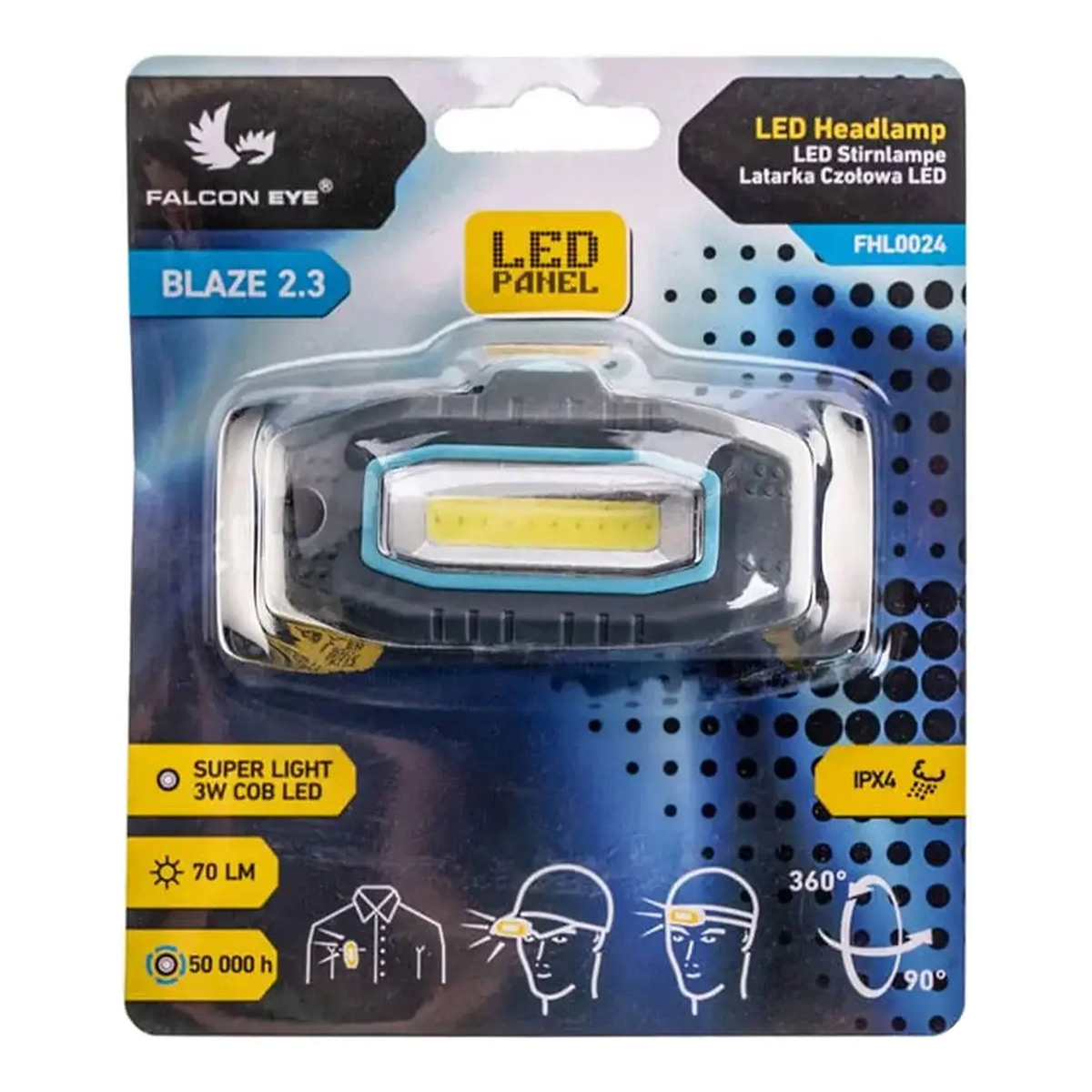 Налобний ліхтар Falcon Eye Blaze 2.3 (70 Лм) — досить легкий (67 г) і компактний освітлювальний прилад. Модель вирізняється спеціальним одноточковим кріпленням, яке дозволяє обертати ліхтар на 360 градусів та кліпсою, що дає можливість закріпити його на кепці або одязі. Чудово підходить для занять спортом ввечері, велосипедистів, туристичних походів, роботи в майстернях і просто повсякденного використання.