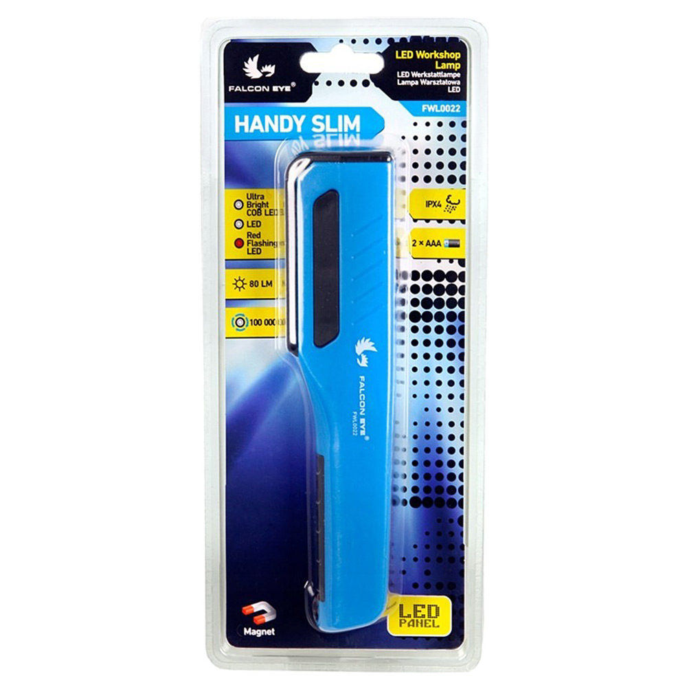 Falcon Eye Handy Slim (80 Лм) — надійний ручний ліхтар зі стійким до ударів корпусом, магнітом і трьома світлодіодами. Модель здатна освітлювати місцевість на відстані до 20 метрів. Завдяки рефлектору спеціальної форми прилад генерує досить широкий промінь. Бічна світлодіодна COB-панель призначена для підсвічування ближньої території, а червоний маячок в режимі миготіння слугує для подачі сигналів на великій відстані. Світлодіоди мають ресурс понад 50 000 годин.