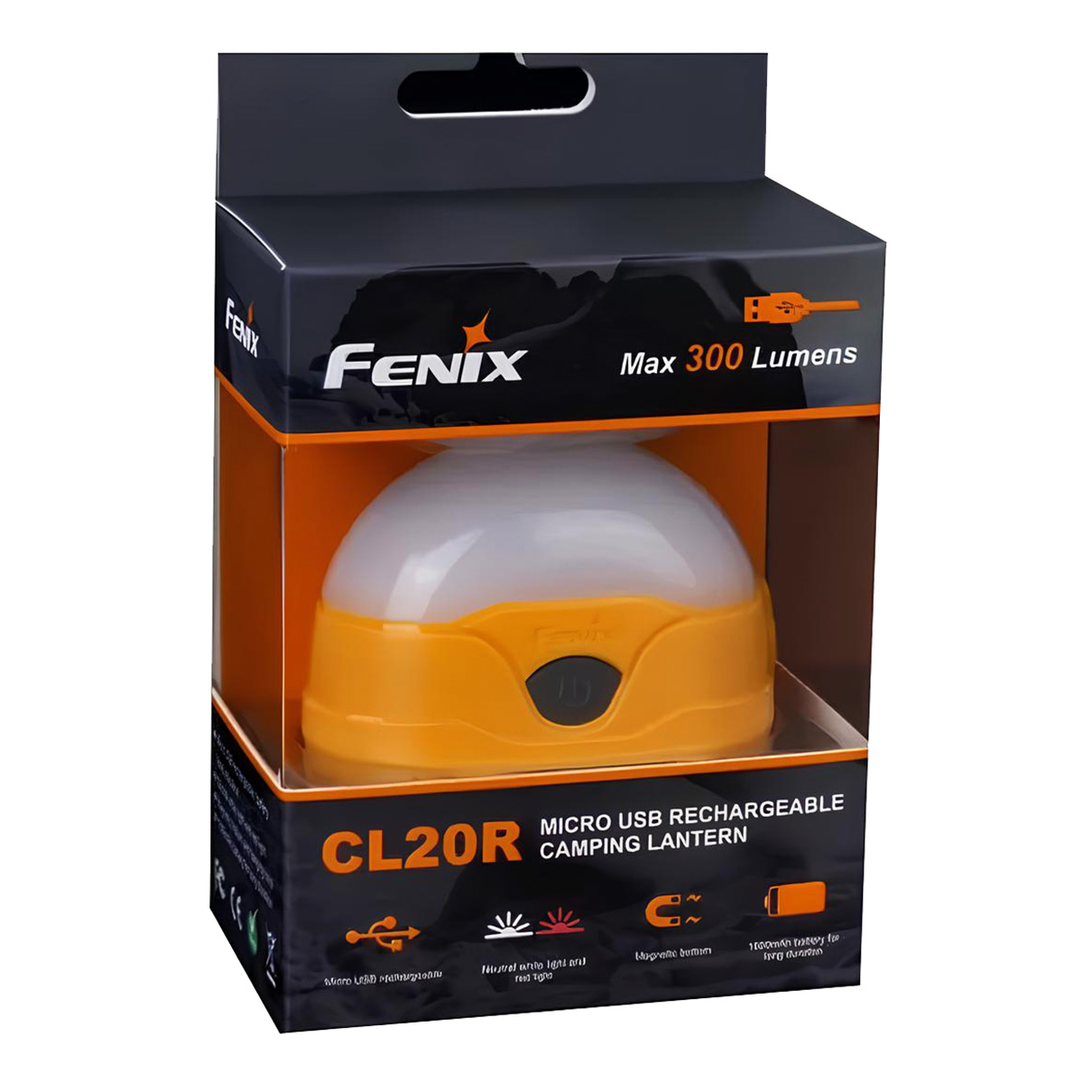 Fenix CL20R Orange (300 Лм) – яскравий акумуляторний кемпінговий ліхтар компактного розміру. Його вага складає всього 91 г, а розміри дозволяють з легкістю поміститися в кишені одягу або рюкзаку. Модель оснащена металевим кільцем та вбудованим магнітом, а також може генерувати світло білого і червоного кольорів.