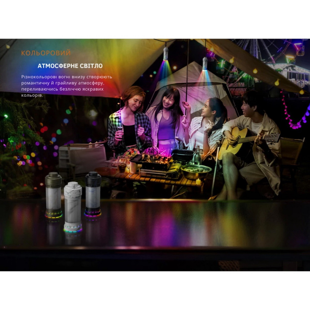 Fenix CL22R — це компактний та легкий кемпінговий освітлювальний прилад, створений для тих, хто цінує комфорт та надійність. Він стане незамінним помічником під час туристичних походів, риболовлі, вечірніх посиденьок на дачі, а також як надійне джерело аварійного освітлення вдома чи в автомобілі. Завдяки максимальному світловому потоку у 500 люмен, цей пристрій здатний ефективно освітлювати значний простір. Модель має 12 різноманітних режимів роботи, що включають не тільки різні рівні яскравості білого світла, але й режими з кольоровим та сигнальним освітленням, дозволяючи адаптувати ліхтар до абсолютно будь-якого сценарію використання — від читання книги в наметі до створення святкової атмосфери.