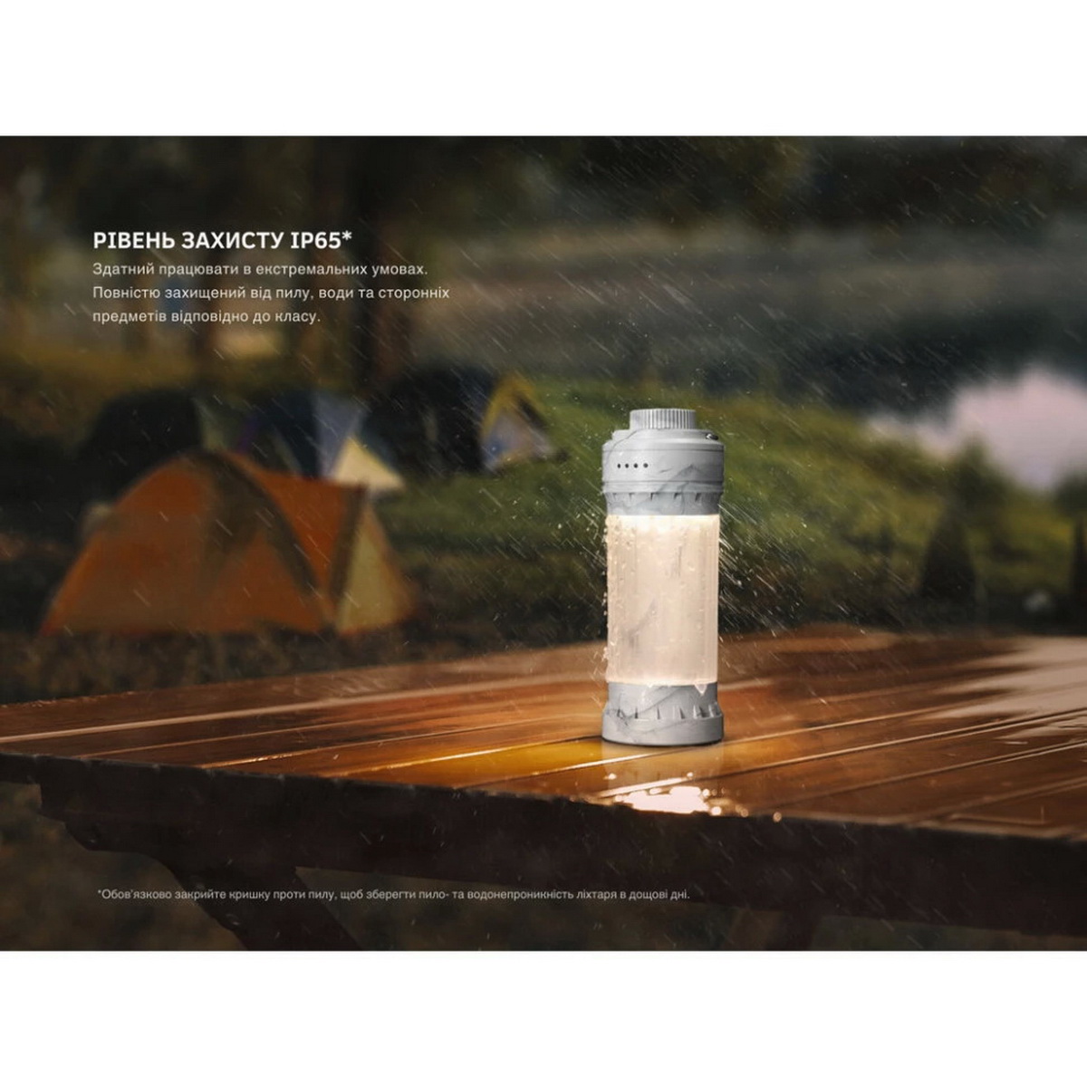 Корпус виготовлений із легкого та міцного полікарбонату, забезпечуючи стійкість до пошкоджень. Ліхтар витримує падіння з висоти до 1,5 м та має захист від пилу і води за стандартом IP65, тому йому не страшний дощ чи випадкові удари. Зручна функція кольорового індикатора рівня заряду завчасно повідомляє про потребу підзарядки, допомагаючи уникнути несподіваного відключення світла у критичний момент.