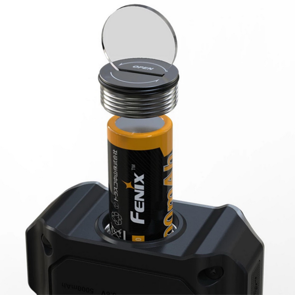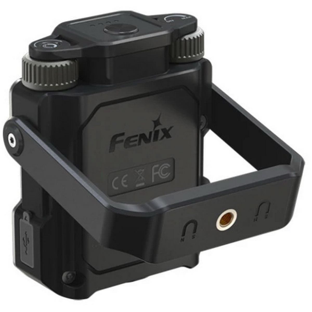 Живлення пристрою здійснюється від фірмового місткого акумулятора Fenix ARB-L21-5000 V2.0 формату 21700, який забезпечує тривалий час роботи – до 285 годин. Заряджання акумулятора здійснюється через сучасний порт USB Type-C, дозволяючи швидко поповнити енергію від будь-якого сумісного джерела (Power Bank, ноутбук, адаптер мережі). Для максимальної універсальності кріплення ліхтар оснащений стандартним отвором для встановлення на штатив, що є незамінним для фотографів і відеографів. Крім того, ручка-тримач має вбудований потужний магніт і здатна обертатися на 360 °, дозволяючи надійно зафіксувати ліхтар на будь-якій металевій поверхні під потрібним кутом.