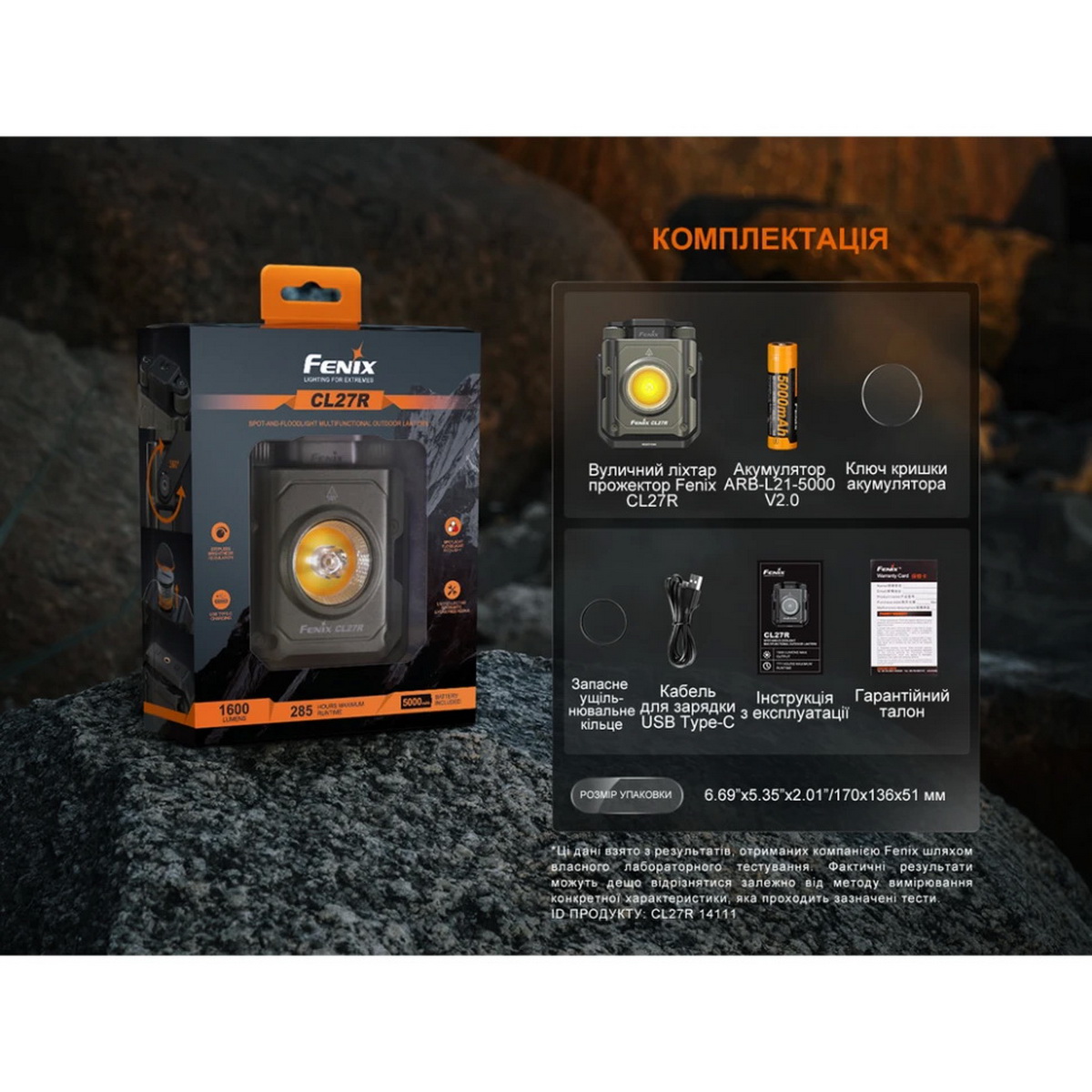 Fenix CL27R — це потужний, надійний та функціональний освітлювальний прилад. Поєднання високої яскравості, гнучкості налаштувань світла, тривалого часу роботи та продуманої ергономіки робить його ідеальним вибором для широкого кола користувачів — від туристів та рибалок до будівельників та спеціалістів з відеознімання.