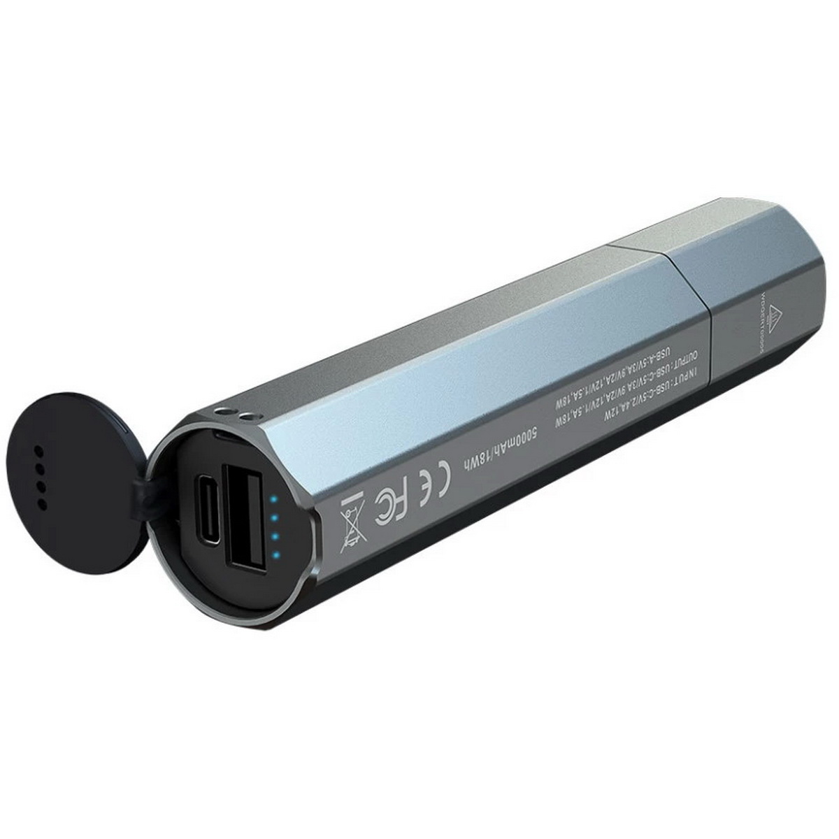 За живлення відповідає вбудований акумулятор місткістю 5000 мАг, який забезпечує роботу ліхтаря до 504 годин без підзарядки у мінімальному режимі. Заряджання здійснюється через сучасний роз’єм USB Type-C, це гарантує швидке та зручне відновлення енергії. Попри високу потужність і тривалу автономність, вага пристрою становить лише 170 грамів, завдяки чому його легко носити з собою щодня чи брати в подорожі.