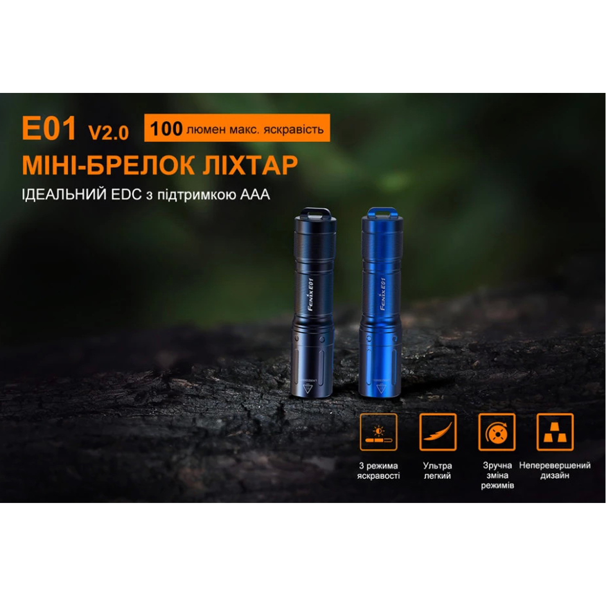 Ліхтар FENIX E01 V2.0 (100 Lm) блакитний