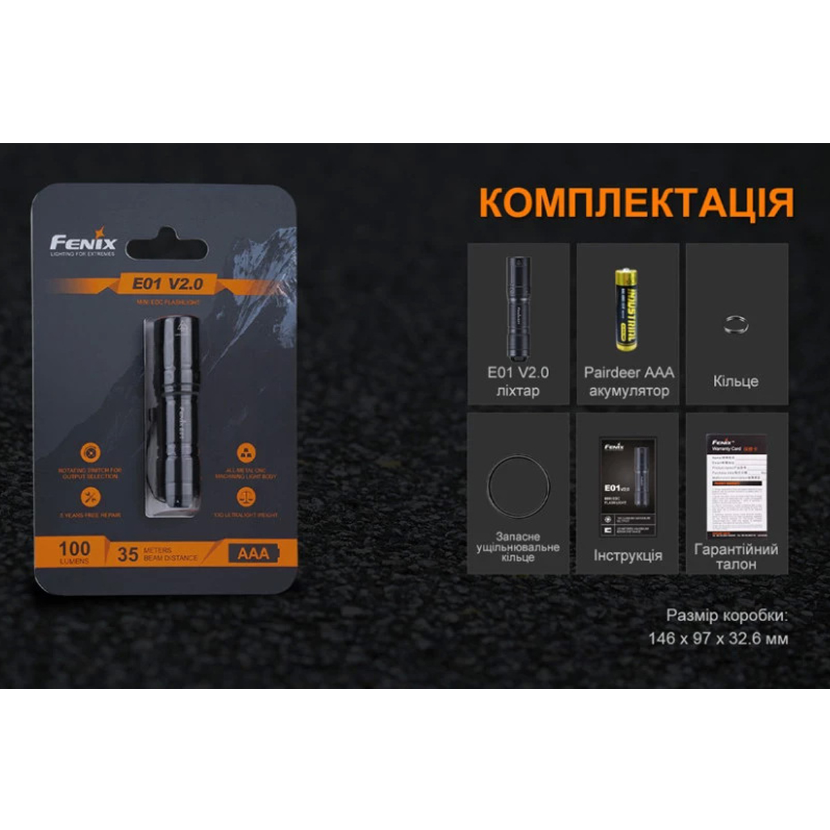 Fenix E01 V2.0 — це компактний, легкий і водночас функціональний ліхтар, який стане надійним супутником у повсякденному житті та під час подорожей. Він поєднує мініатюрні розміри з достатньою потужністю, довговічністю та високим рівнем захисту, роблячи його незамінним аксесуаром для тих, хто цінує практичність і надійність у будь-яких умовах.