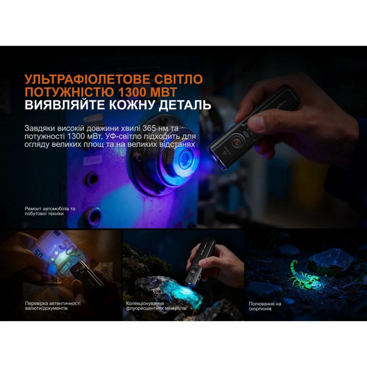 - Ліхтар FENIX SW05R-UV LED (150 Lm) чорний 2030грн.