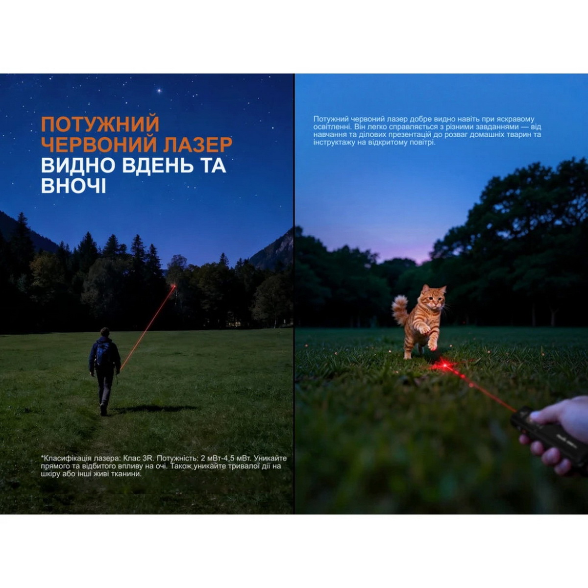 - Лазер: червоний 650 нм
