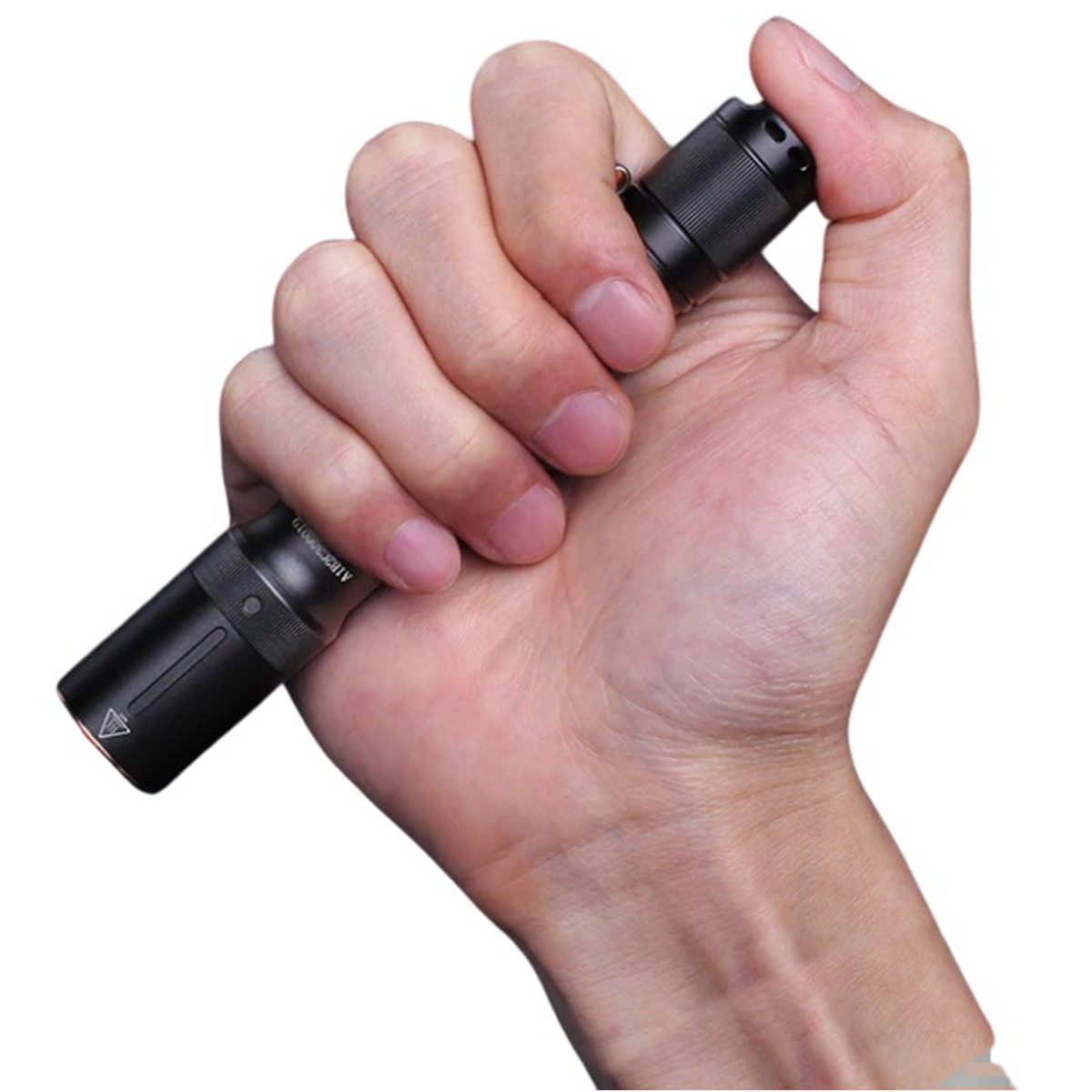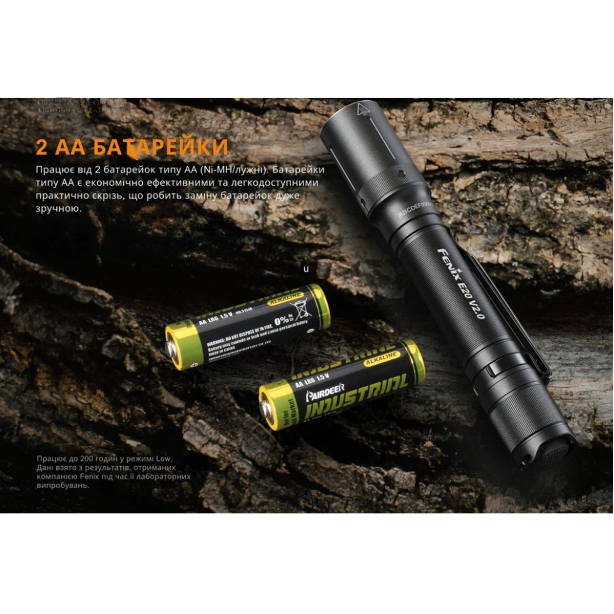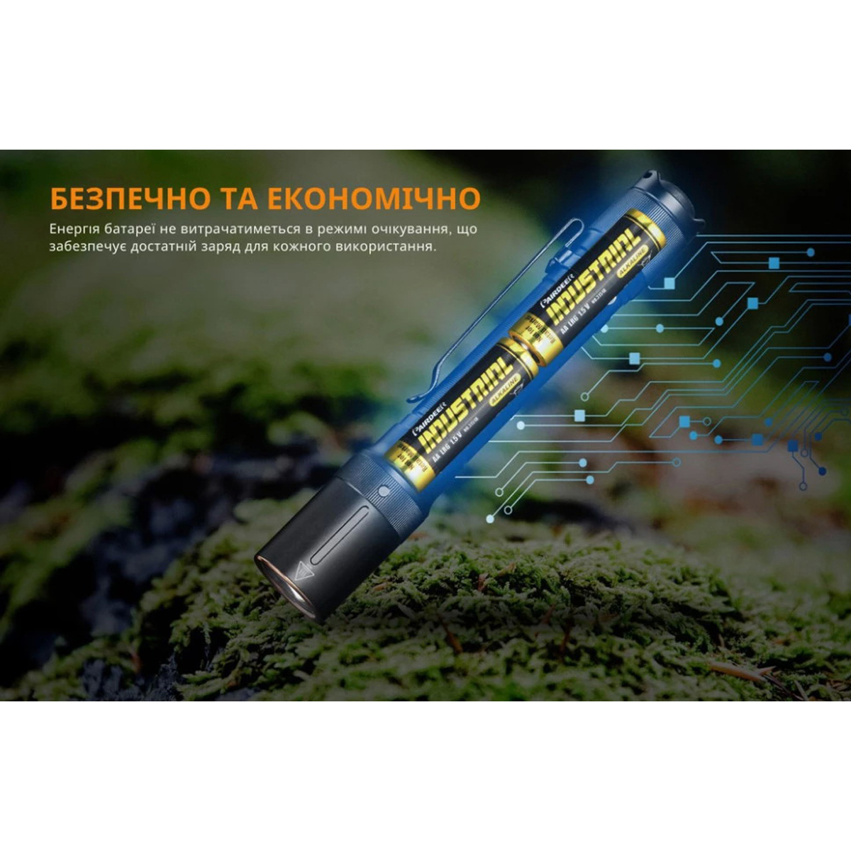 Живлення ліхтаря здійснюється від двох батарейок типу AA, які легко замінити навіть у польових умовах, роблячи пристрій універсальним і зручним у використанні. Передбачена функція захисту від переполюсовки, яка оберігає внутрішні елементи від неправильного встановлення джерел живлення. Вага приладу становить усього 42 грами без батарей, що дозволяє носити його завжди під рукою — у кишені, сумці чи рюкзаку, не відчуваючи додаткового навантаження.