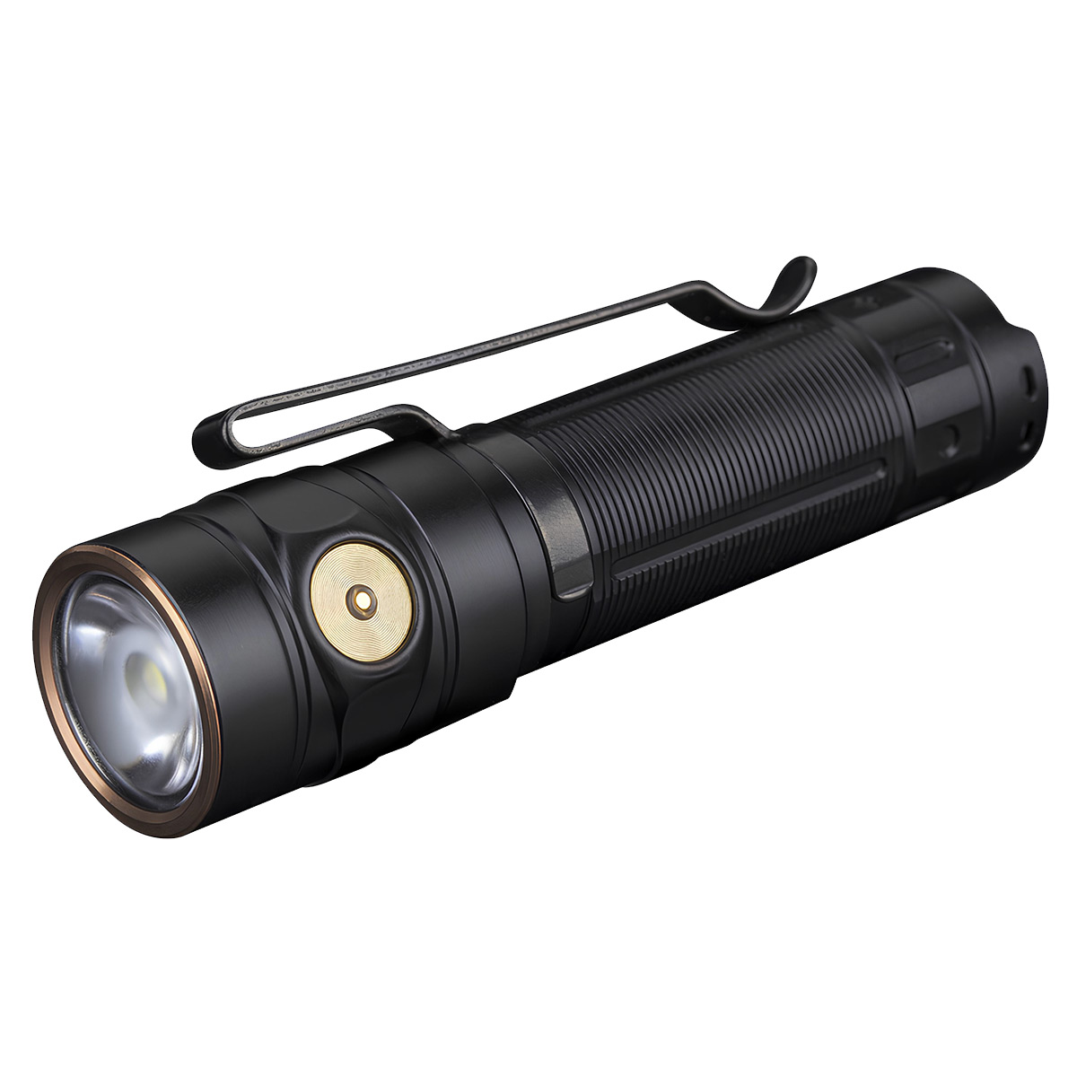 Під надпрозорою лінзою розташований світлодіод Luminus SST40, який випромінює холодне біле світло та має тривалий ресурс роботи – 50 000 годин. Щоб уникнути перегріву, ліхтар оснащений спеціальною системою захисту, яка автоматично знижує яскравість світіння за потреби. Крім того, прилад захищений від коротких замикань і переполюсовки, що сприяє подовженню його терміну служби.