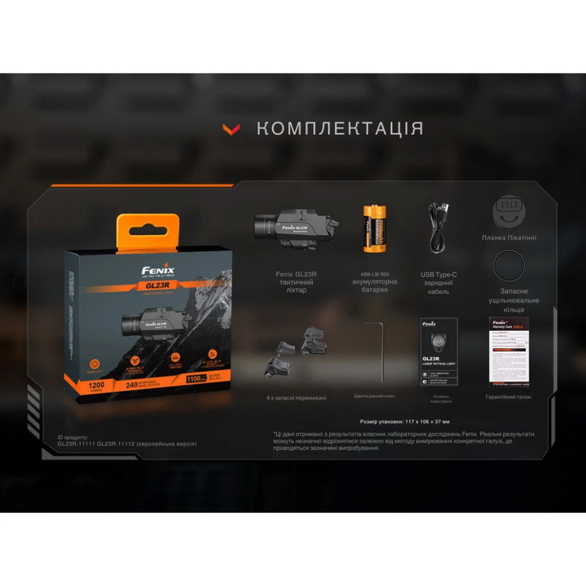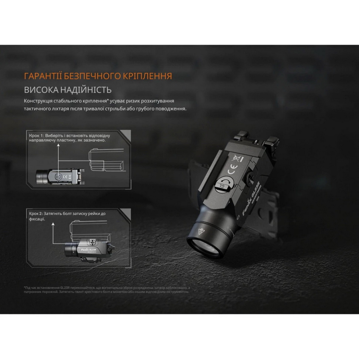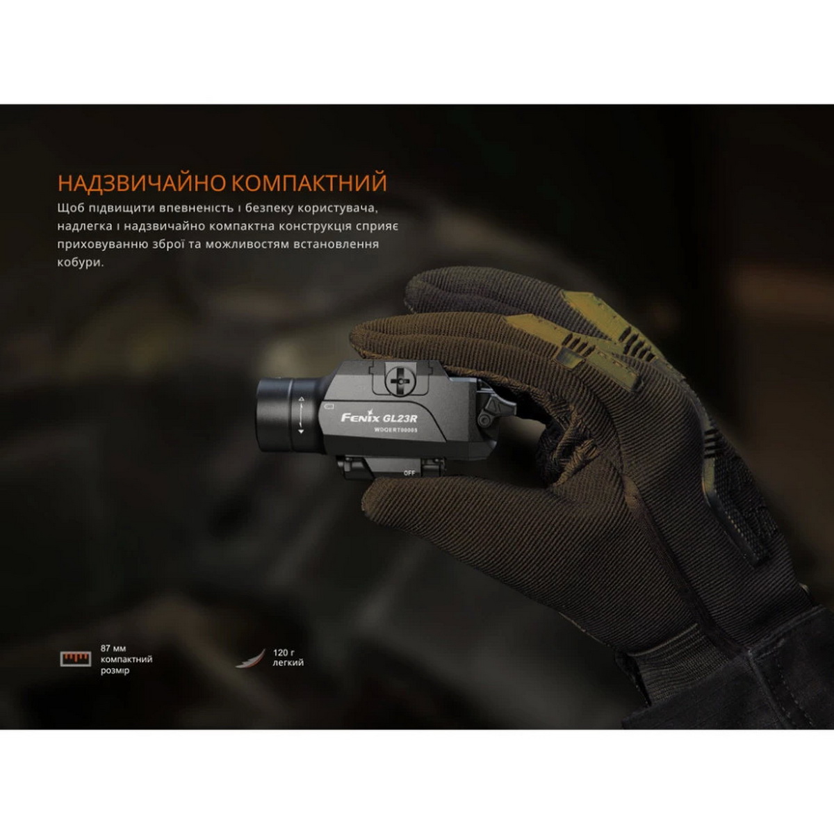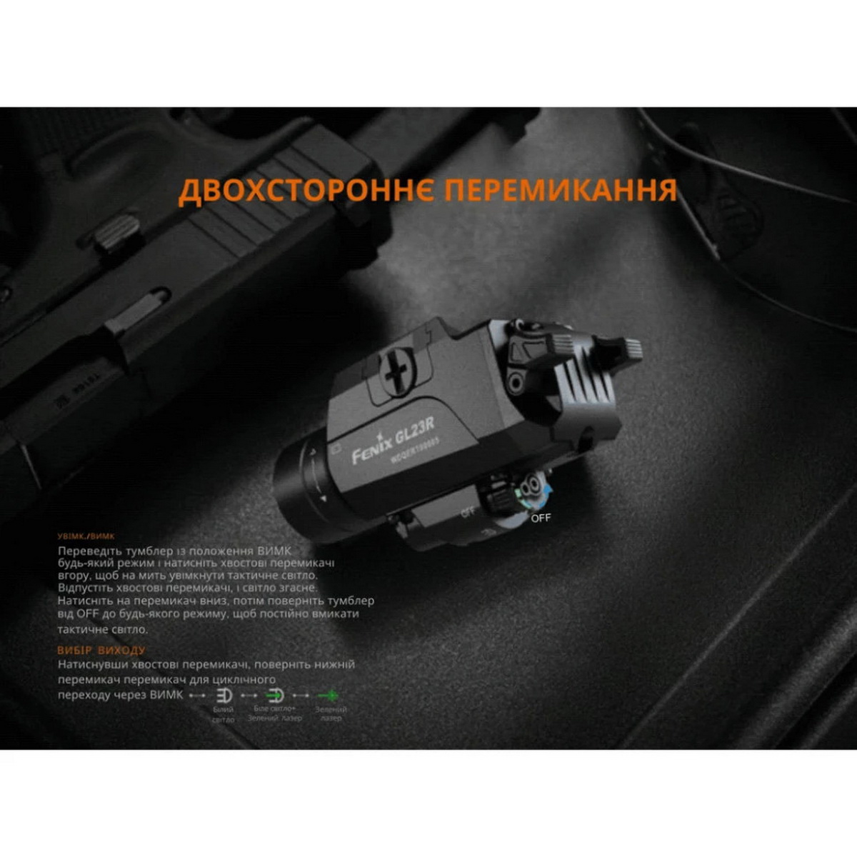 Fenix GL23R — це не просто підствольний ліхтар, а комплексне тактичне рішення, поєднуючи в собі потужне освітлення, точний лазерний цілевказівник, надійність та інтуїтивно зрозуміле керування. Його універсальність, міцність та технологічні характеристики роблять його незамінним аксесуаром для співробітників правоохоронних органів, військових та цивільних стрільців, які прагнуть досягти максимальної ефективності та впевненості при використанні зброї в умовах недостатнього освітлення.