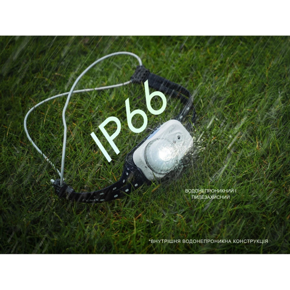 Корпус виготовлено з міцного та водночас легкого пластику. Ліхтар стійкий до ударів і витримує падіння з висоти до 1 метра — важливий параметр для туристів і мандрівників. Захист стандарту IP66 гарантує повну пилонепроникність і стійкість до сильних потоків води, тож навіть злива чи мокрий сніг не вплинуть на його працездатність. Конструкція відзначається універсальністю: магнітна основа дозволяє легко фіксувати ліхтар на металевих предметах, перетворюючи його на стаціонарне джерело світла. Швидкознімна задня панель із кліпсою дає змогу миттєво від’єднати ліхтар від налобного кріплення та закріпити його на рюкзаку, одежі або ремені, отримавши компактний нагрудний варіант освітлення.
