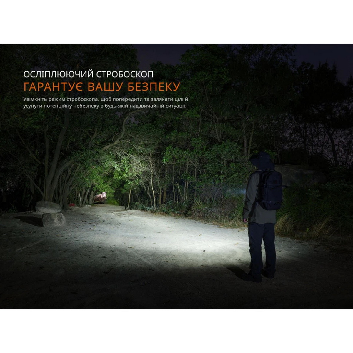 Корпус моделі виготовлений із міцного та легкого алюмінію A6061-T6, що забезпечує стійкість до ударів з висоти до 1.5 метра. Ступінь захисту IP68 підтверджує повну герметичність ліхтаря та його готовність працювати у складних погодних умовах. Для використання як студійного або портативного прожектора передбачене стандартне різьблення для встановлення на фото- чи відеоштатив. Ергономічна ребриста поверхня забезпечує надійне утримання, а спеціальні тепловідвідні елементи ефективно знижують нагрівання корпусу під час тривалої роботи.