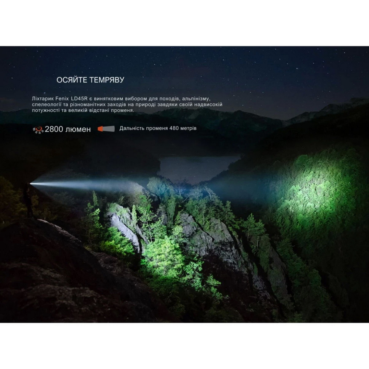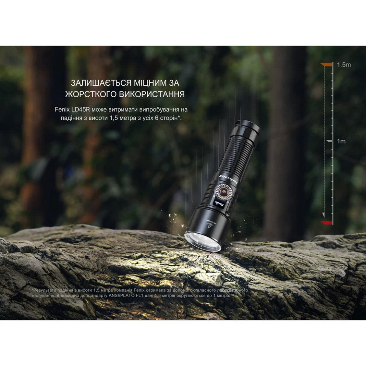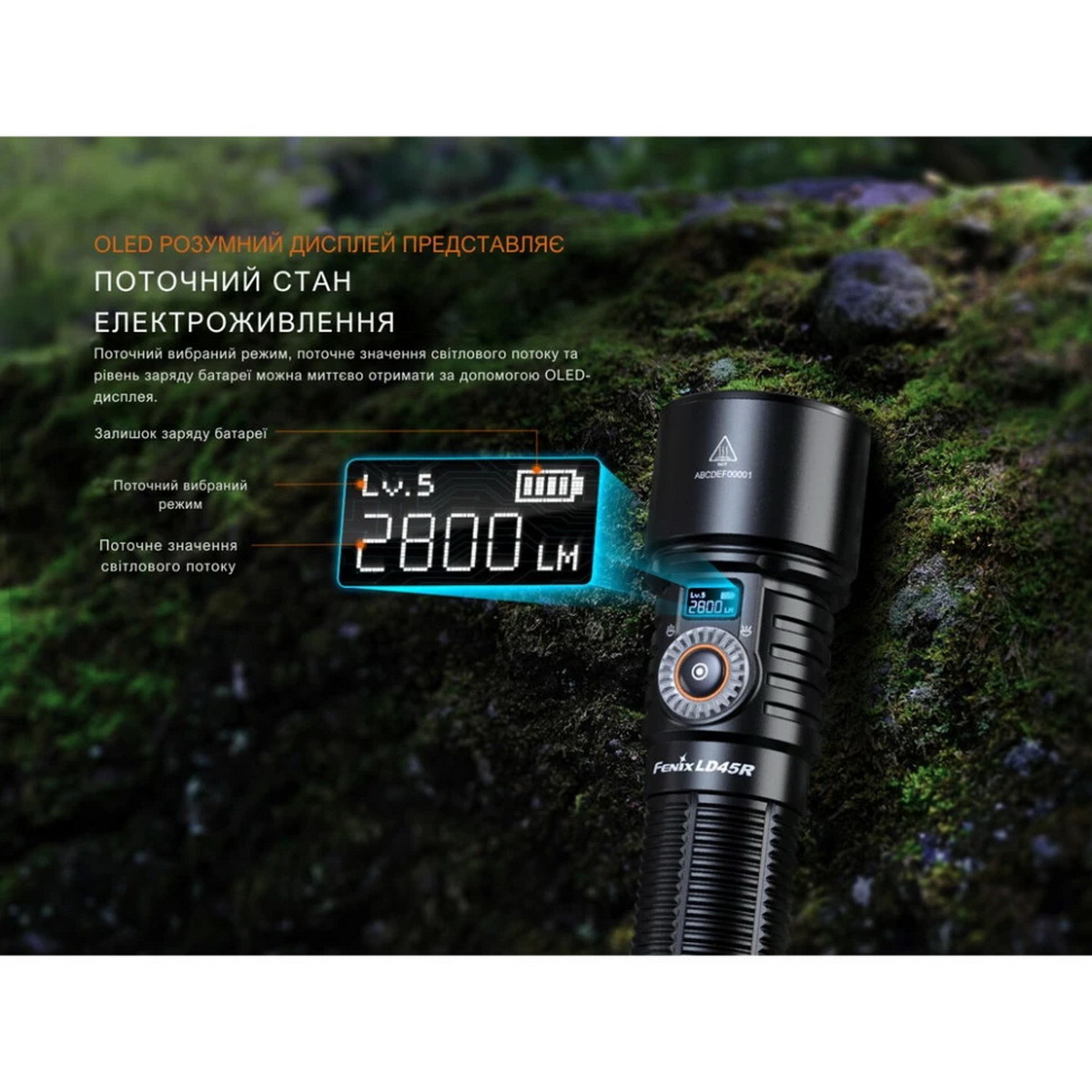 Fenix LD45R — це універсальний, потужний та якісний освітлювальний інструмент. Поєднання потужної яскравості, унікальної системи цифрового зуму, інформативного OLED-дисплея та надійного захисту робить його ідеальним вибором для професіоналів та ентузіастів, які цінують якість, функціональність та довговічність.